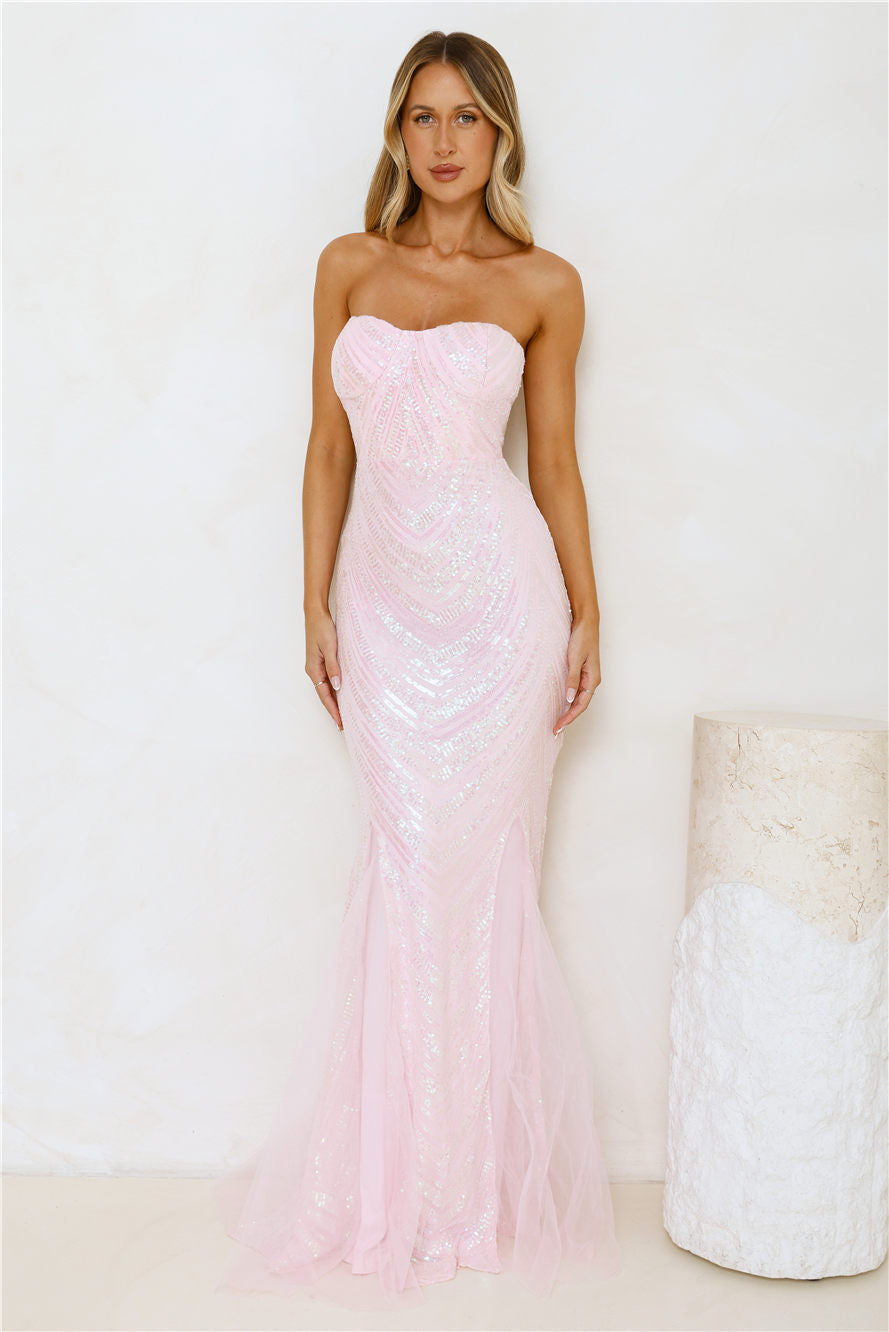Fancy Dressed Strapless Sequin Maxi Dress Pink