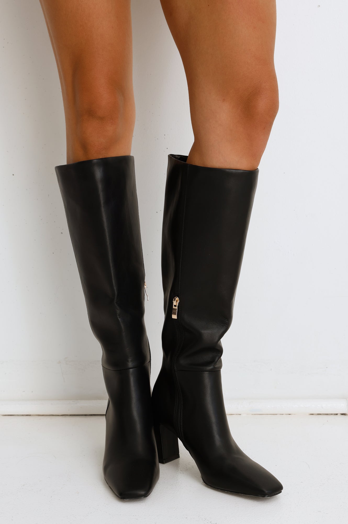The Blythe Boots bring structured sophistication with a knee-high silhouette and a sleek closed square toe. Set on a comfortable mid heel with a tonal inner zip for easy wear. they're the perfect blend of polish and practicality.