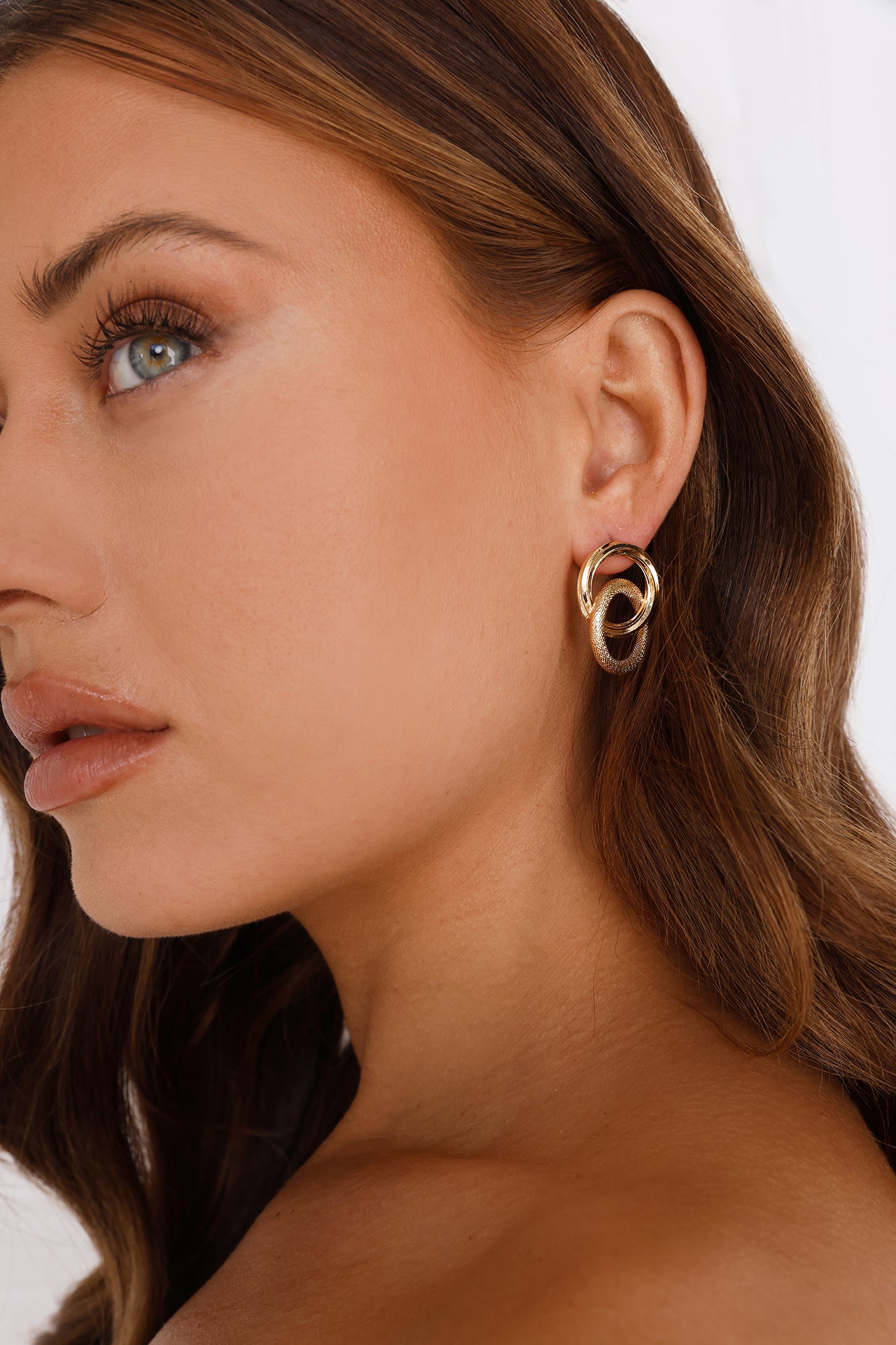 Add instant sparkle to your party look with the Chic Glint Earrings. featuring a sleek gold-tone hoop design that's effortlessly fun and flirty.