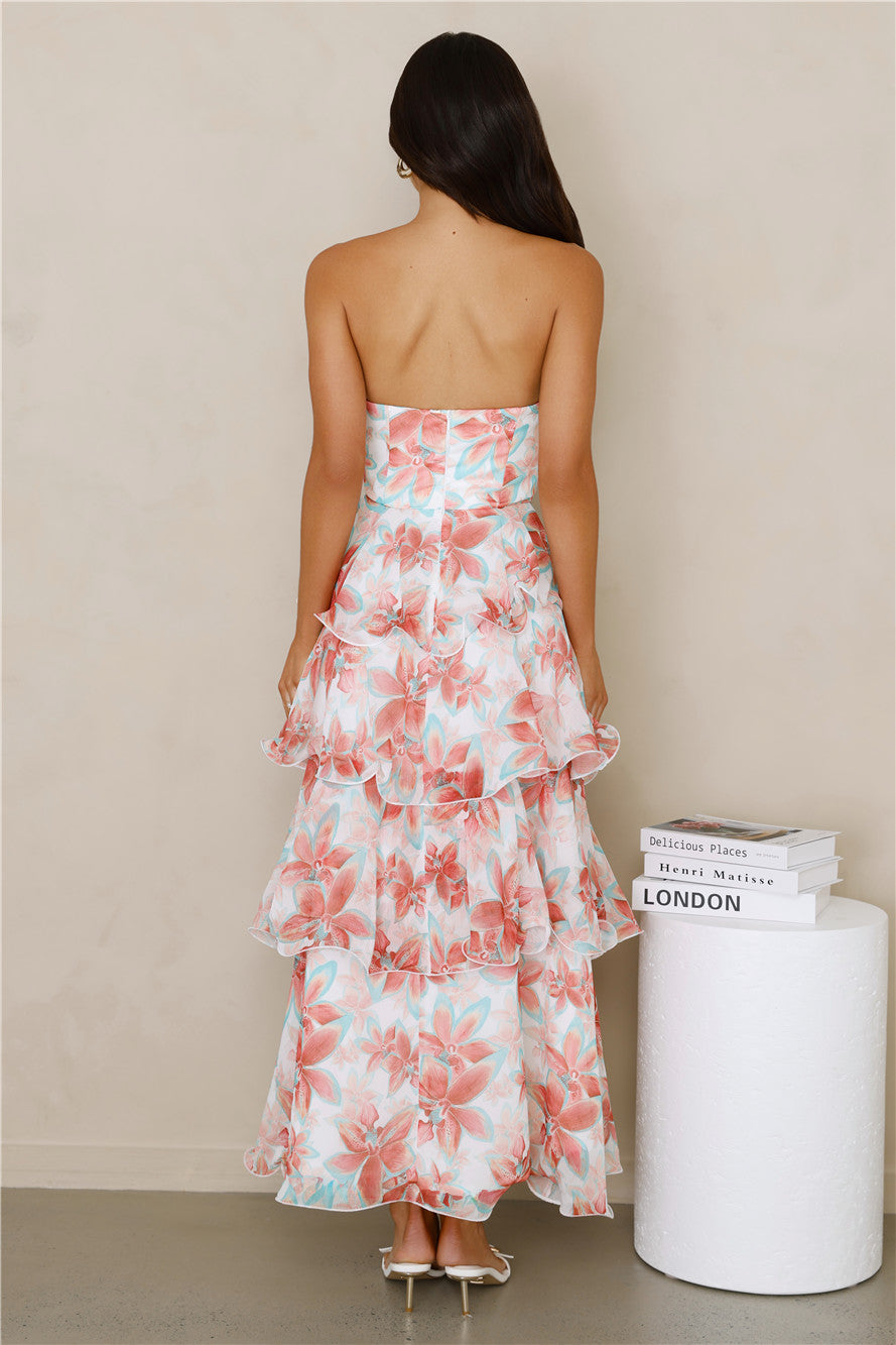 The Chicago Chic Strapless Maxi Dress is the perfect blend of style and comfort. Featuring a flattering strapless design. a beautiful print. and a tiered. flowy skirt. this dress exudes effortless elegance for any occasion. Style with heels!