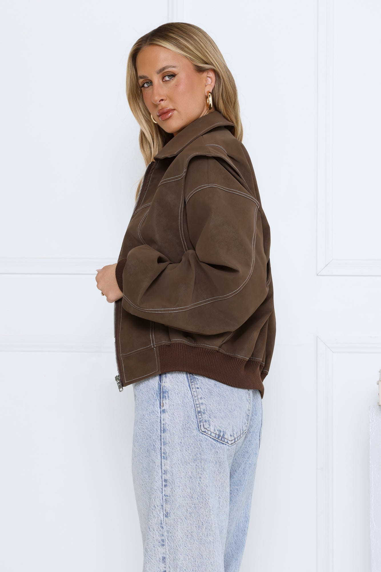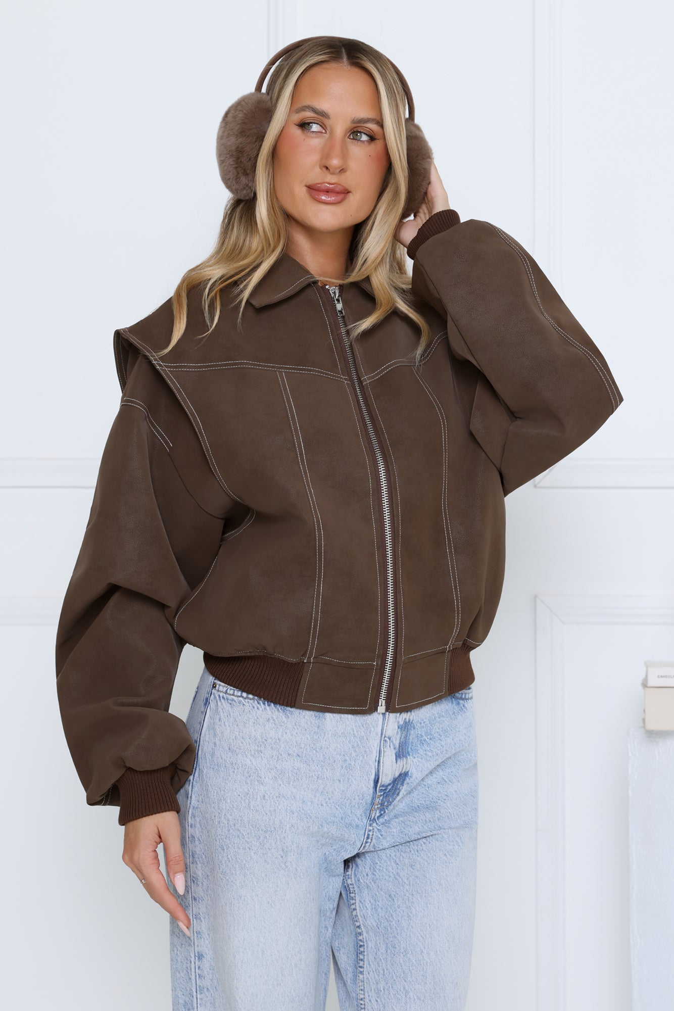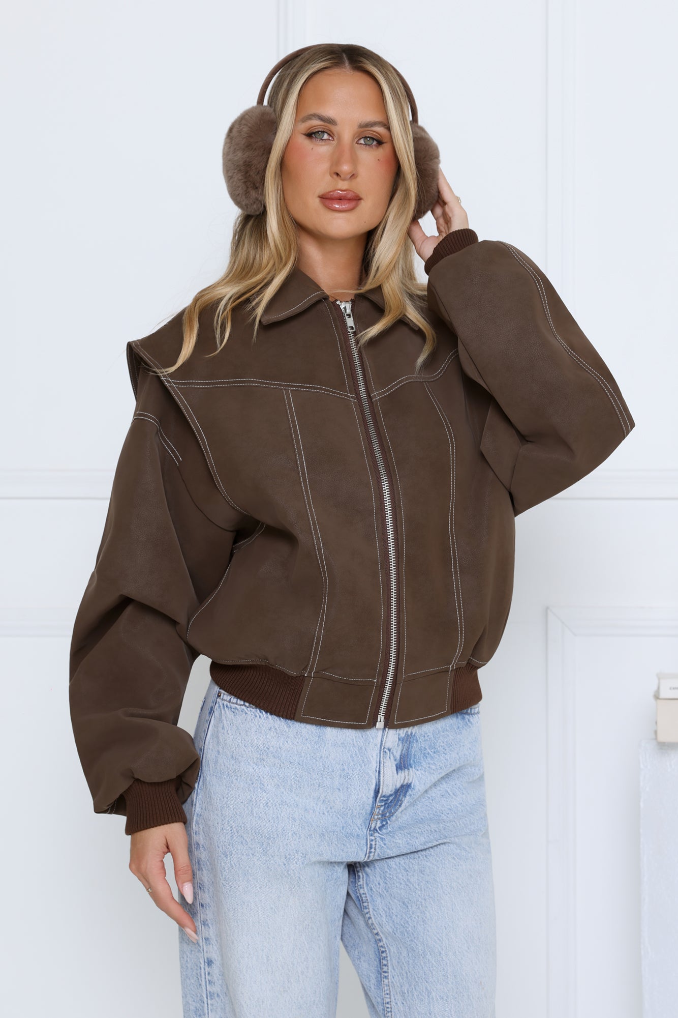 Layer up in style with the Chocolate Frosting Jacket. Featuring a zip-front design. elasticated hem. and contrast stitching. this jacket combines comfort and casual-chic vibes for everyday wear. Pair it with jeans. boots. and a cozy knit for a laid-back yet polished look.