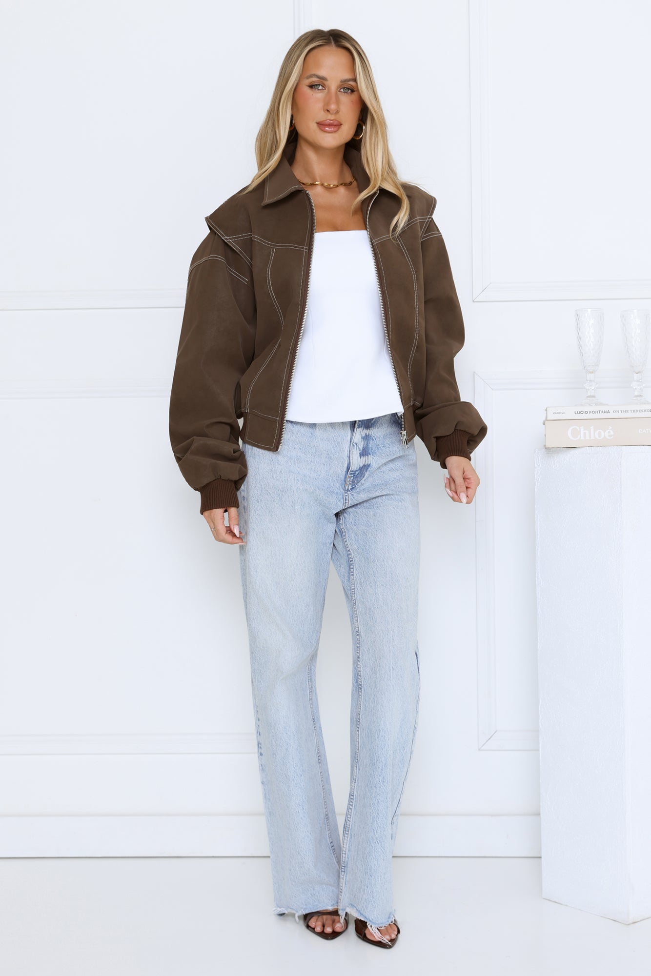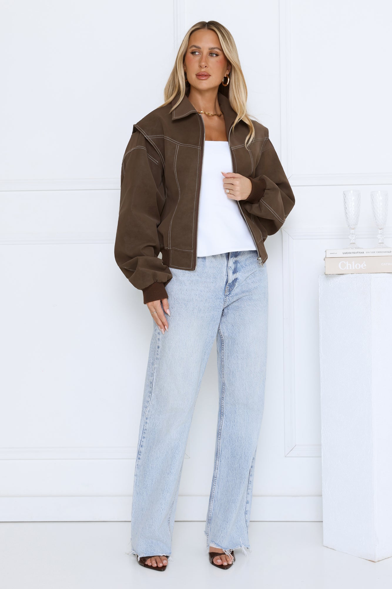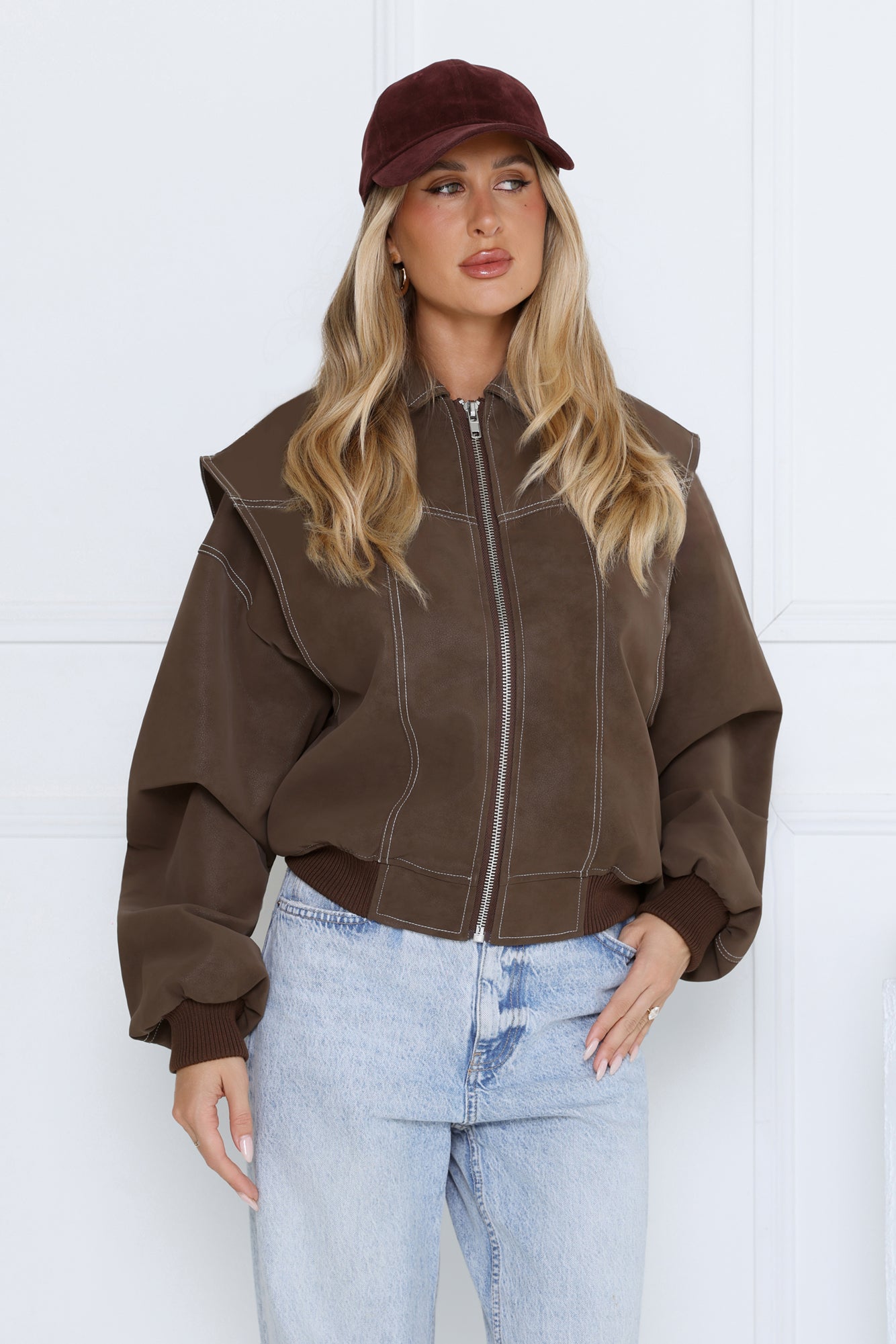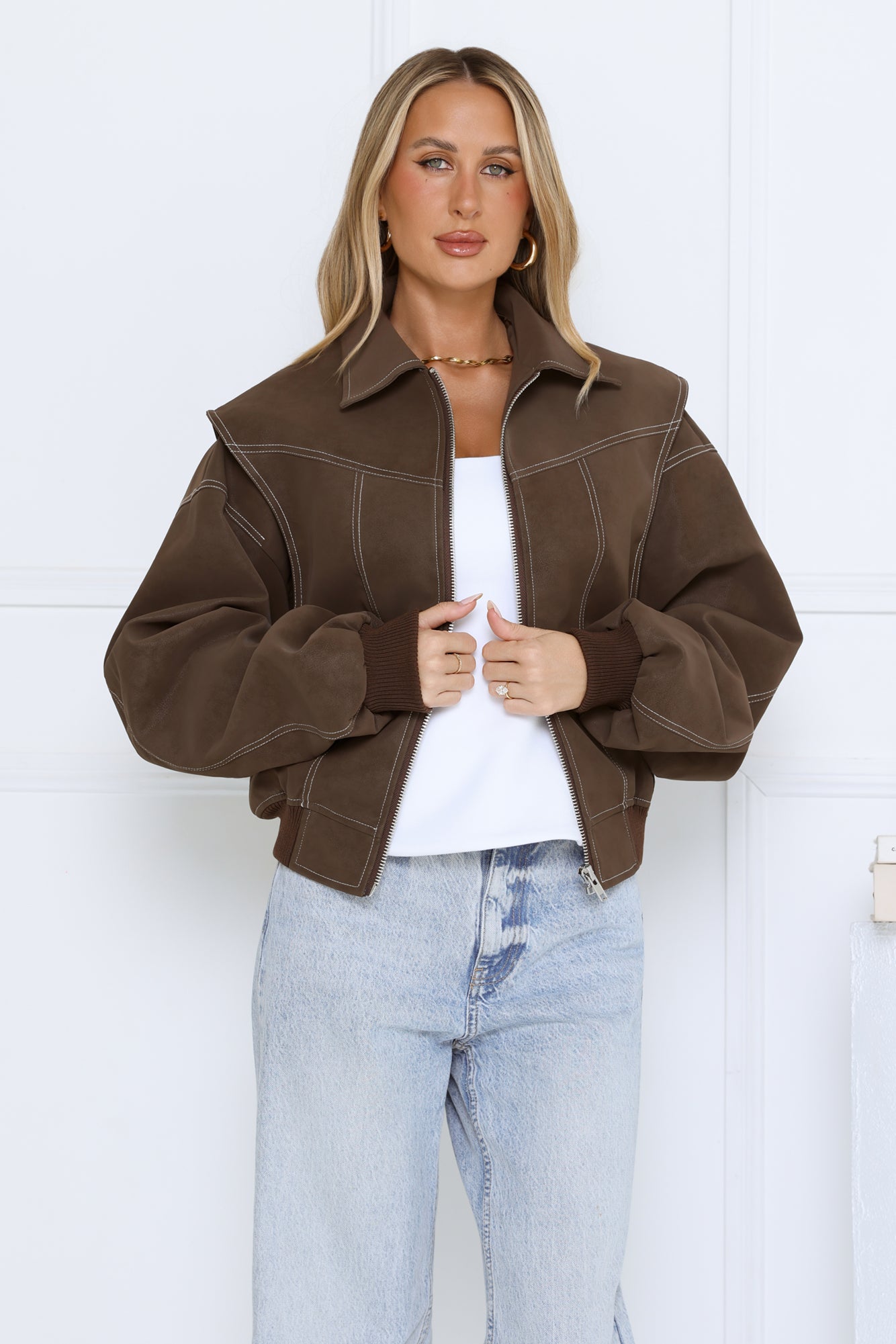 Layer up in style with the Chocolate Frosting Jacket. Featuring a zip-front design. elasticated hem. and contrast stitching. this jacket combines comfort and casual-chic vibes for everyday wear. Pair it with jeans. boots. and a cozy knit for a laid-back yet polished look.
