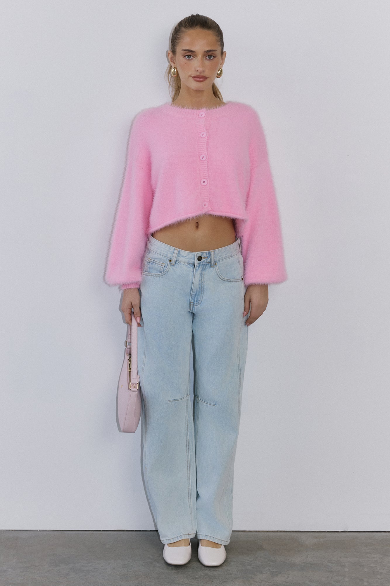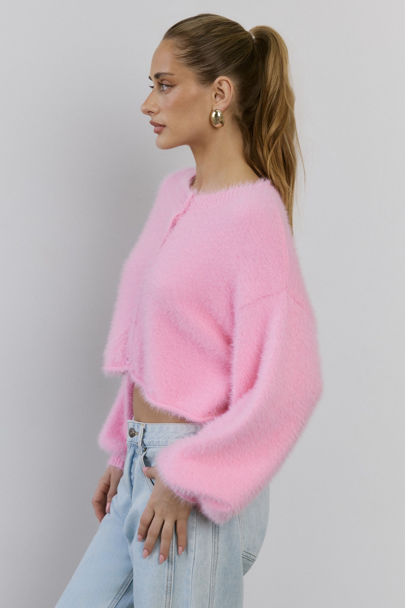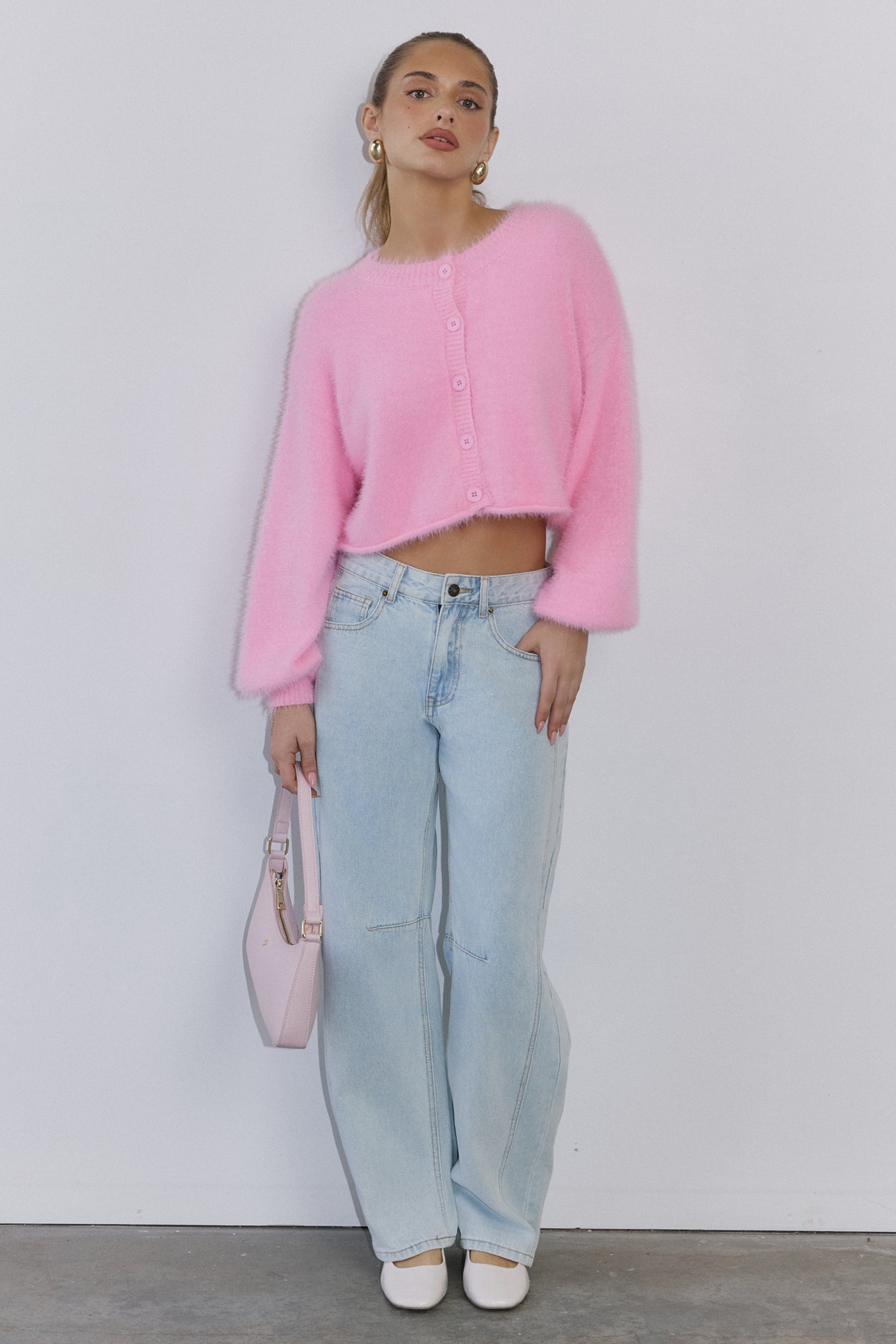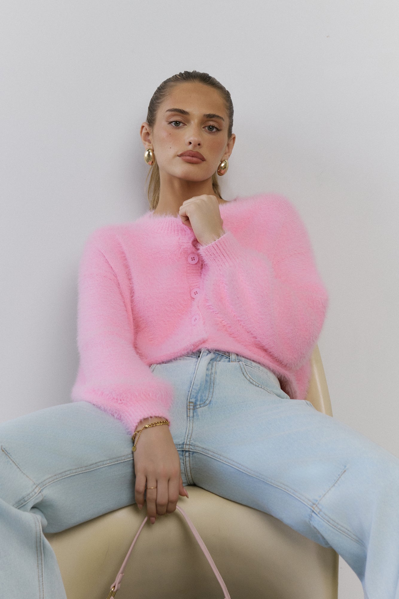 The Cloud Nine Fluffy Cardigan is your go-to for cosy. elevated style. Made with soft. stretch. fluffy knit. this long-sleeve. button-front cardigan features cuffed sleeves. giving you a modern. chic look that pairs perfectly with any outfit.