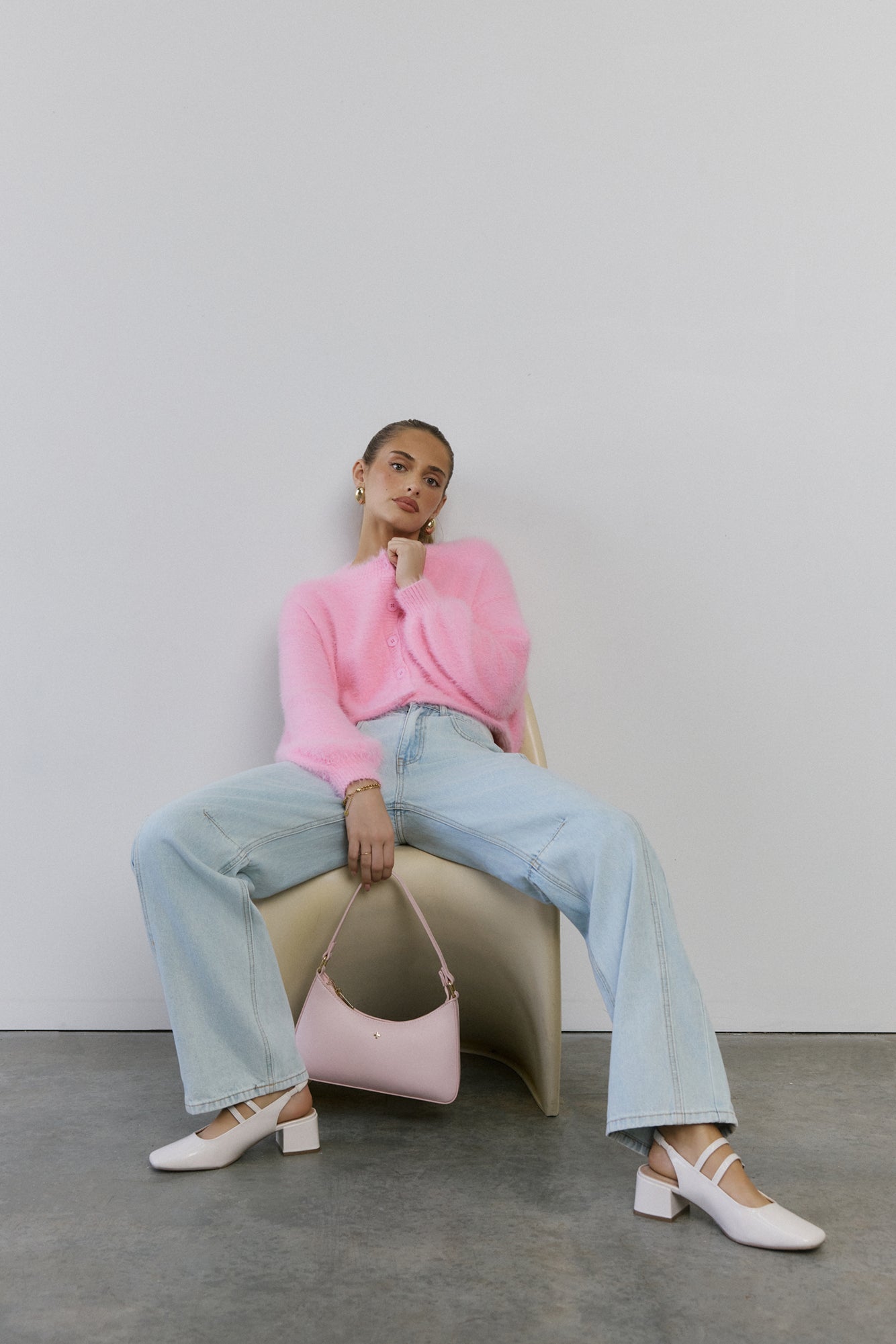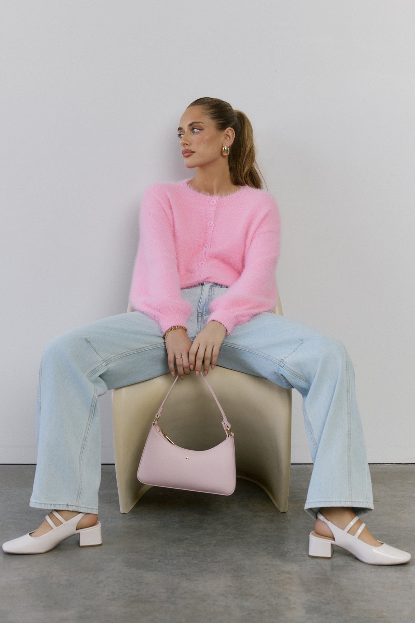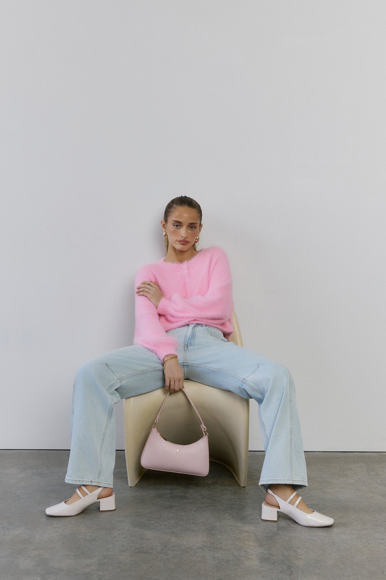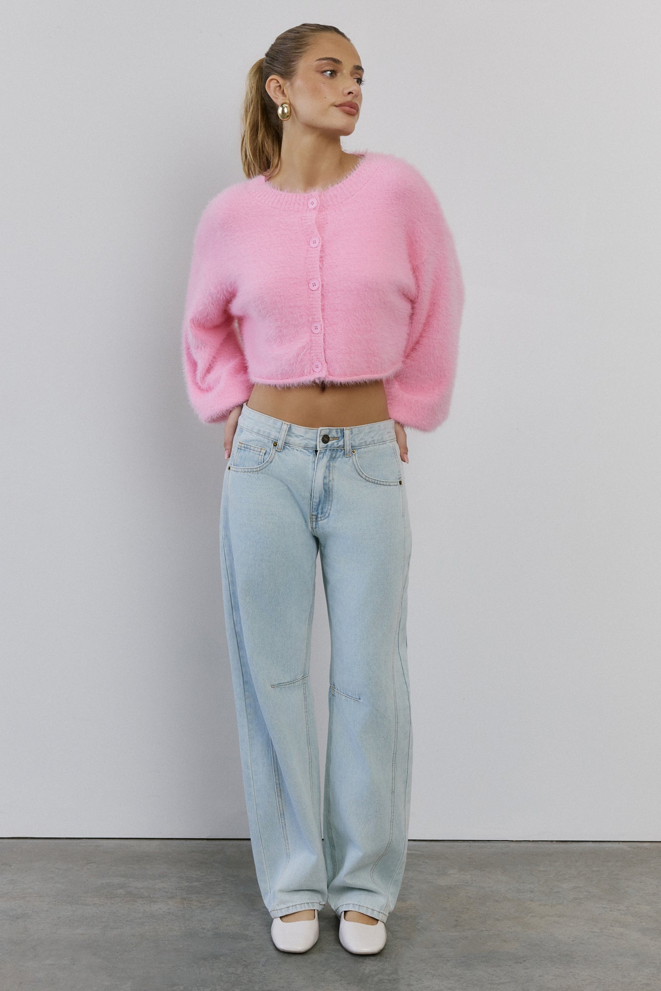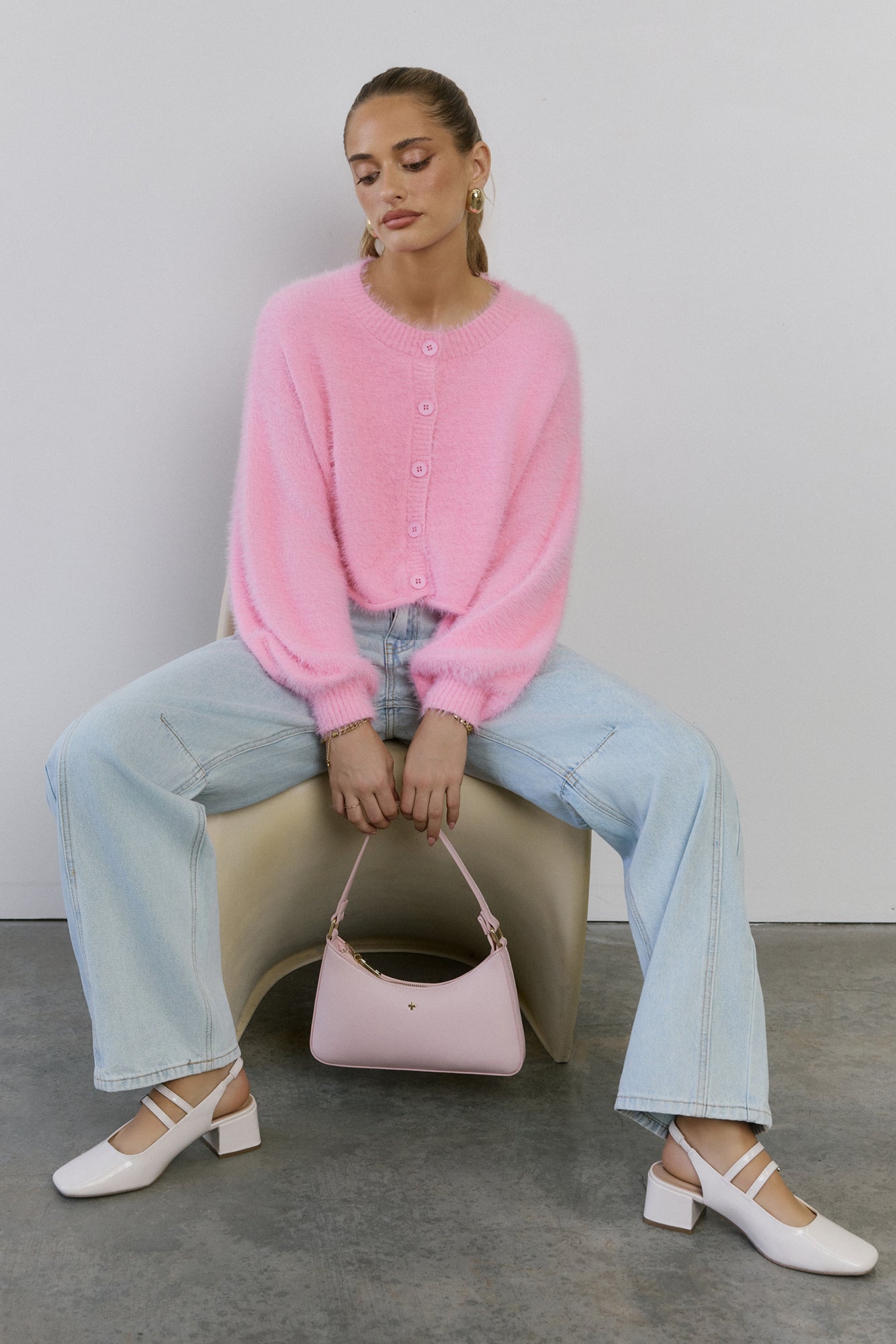 The Cloud Nine Fluffy Cardigan is your go-to for cosy. elevated style. Made with soft. stretch. fluffy knit. this long-sleeve. button-front cardigan features cuffed sleeves. giving you a modern. chic look that pairs perfectly with any outfit.