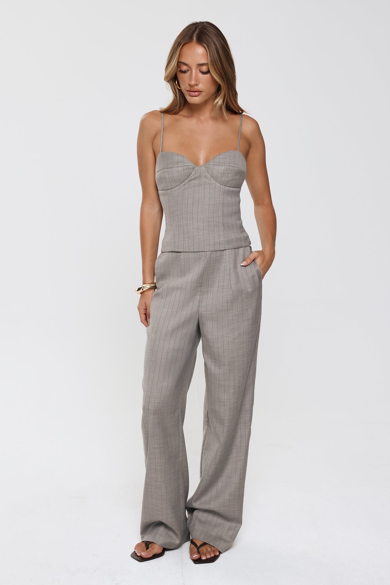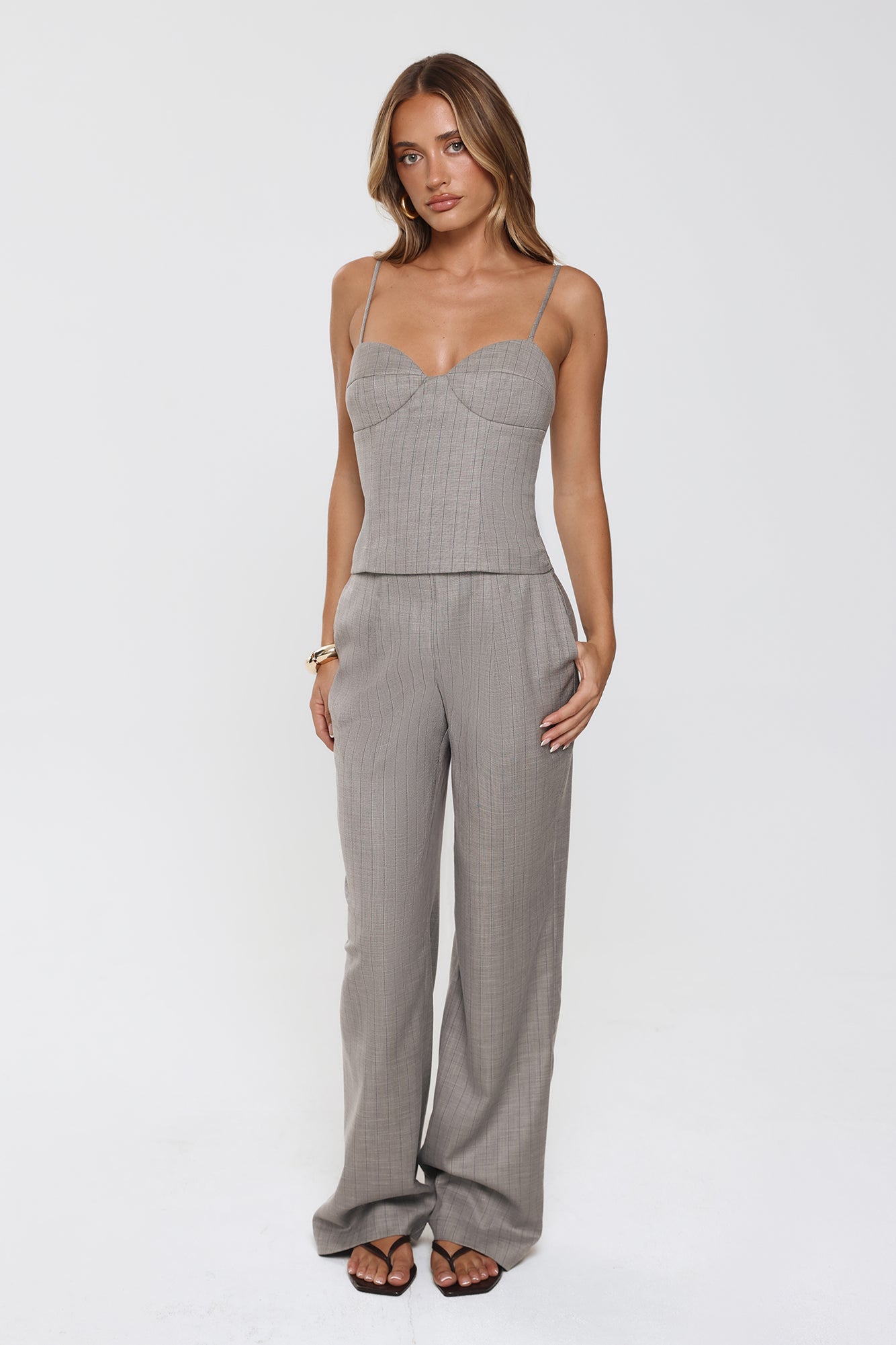 Polished and versatile. the Desk To Dazzle Tailored Pants feature a high-rise fit and wide-leg silhouette for effortless elegance. Two side pockets add functionality. making them perfect for workdays or elevated weekend styling. Pair with a tailored top or blazer for a chic. polished look.