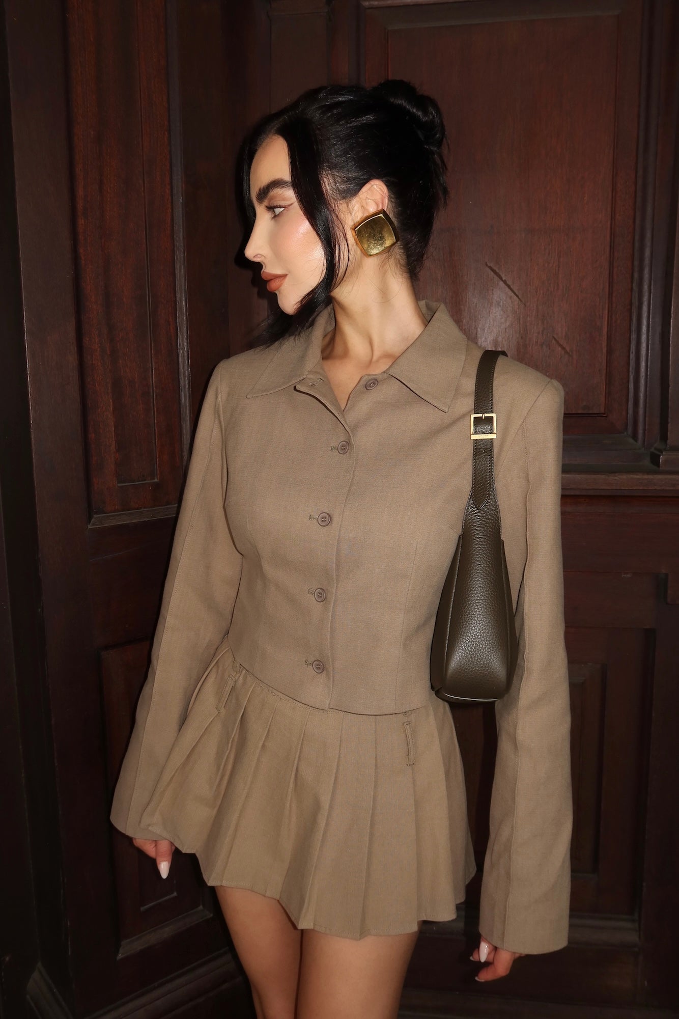 Tailored with a twist. the Endless Cropped Blazer brings elevated edge to your everyday looks. With a sharp single-breasted front. structured shoulder pads. and a perfectly cropped hem. this cotton blazer balances polish and play. Style with the matching skort.