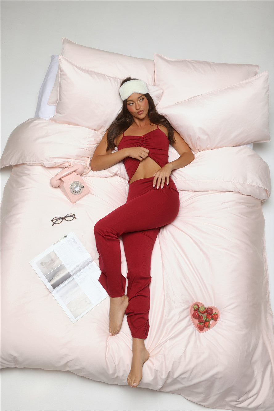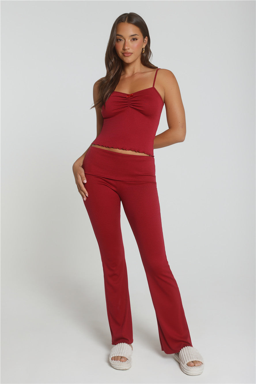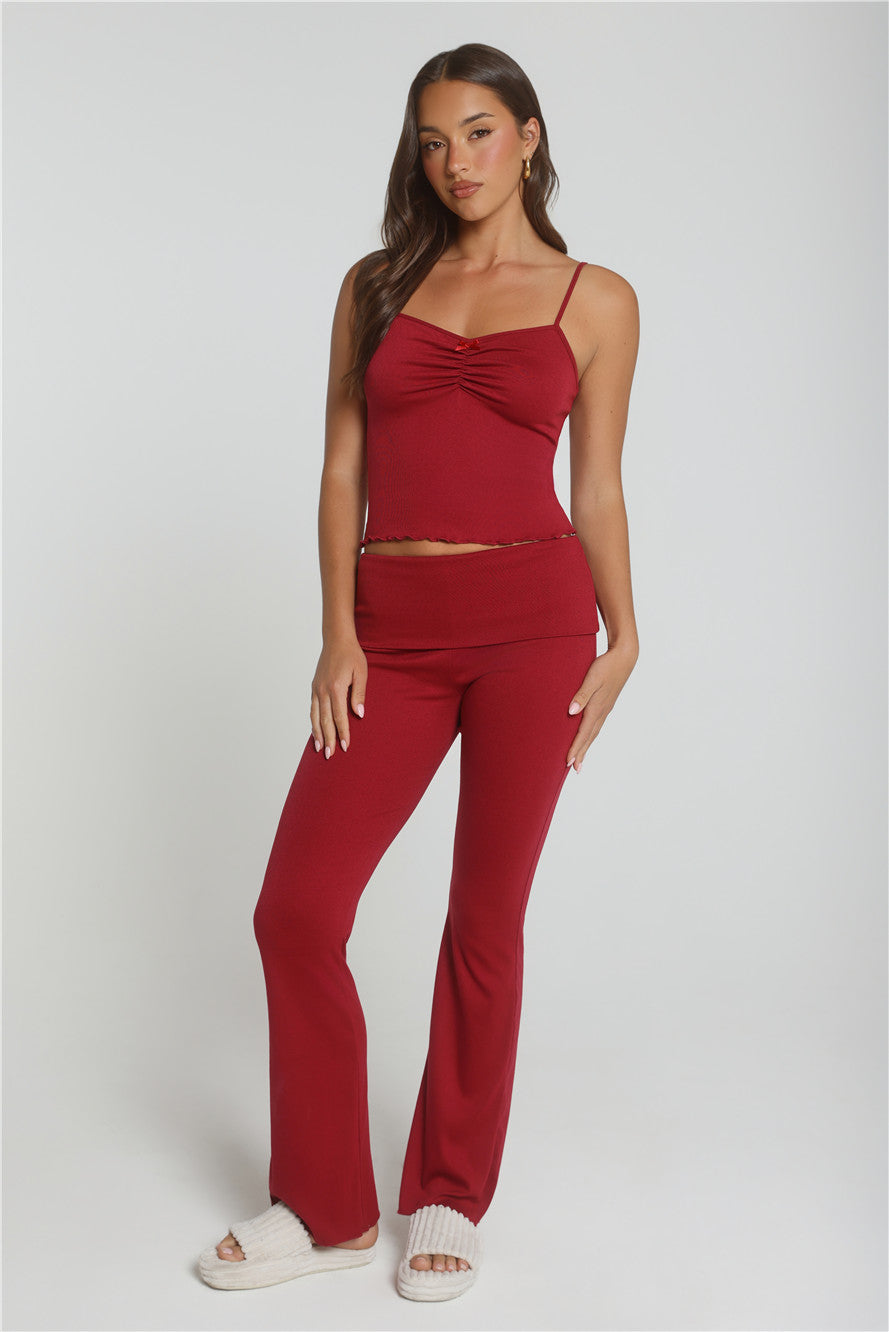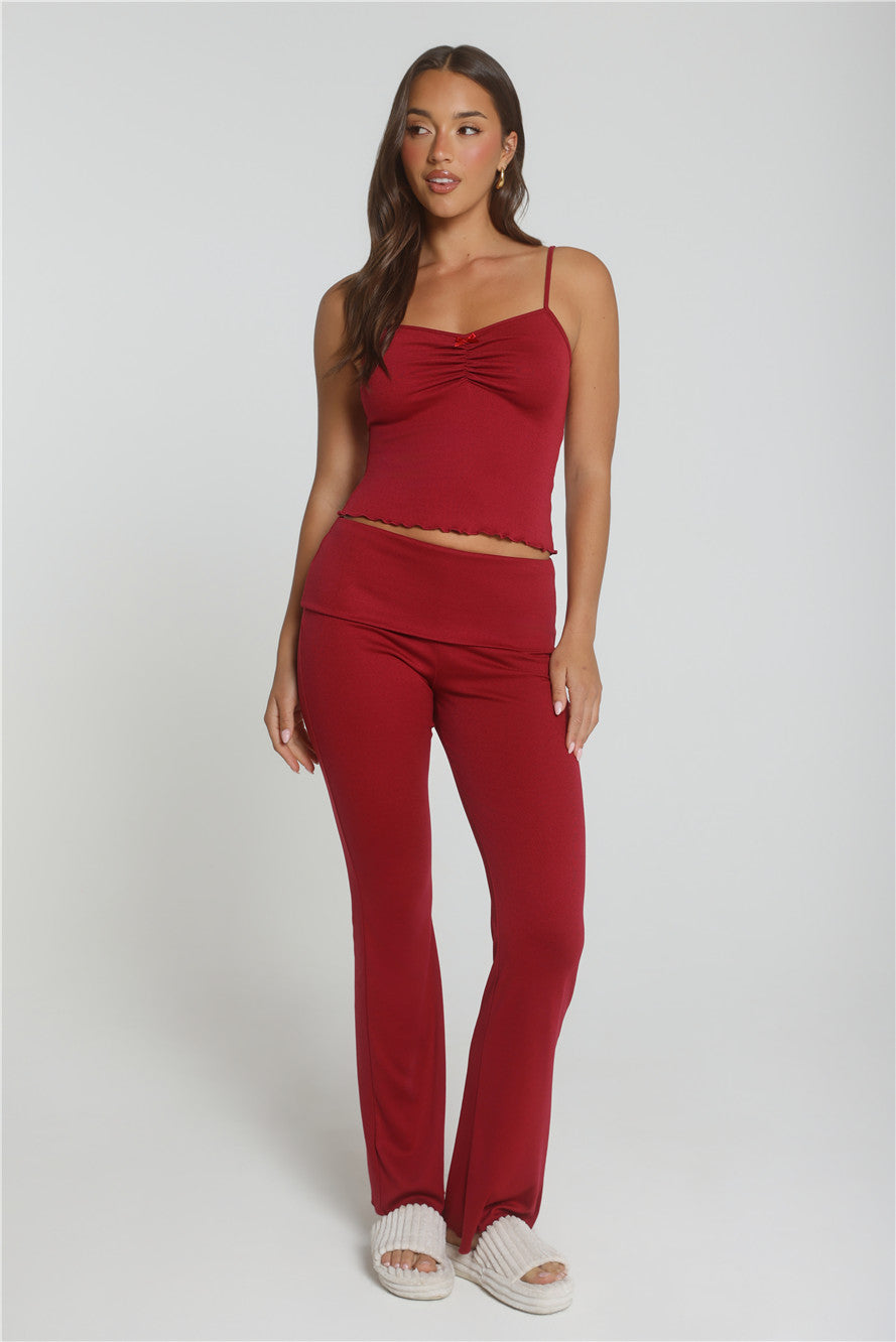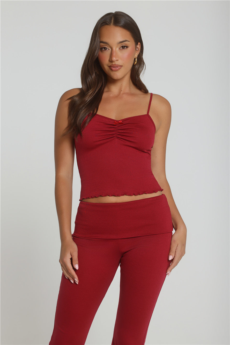 Cozy meets cute with the Fireside Moments Singlet Top. Crafted from soft pointelle fabric with a delicate lettuce hem and easy slip-on design. this top is perfect for relaxing by the tree or festive movie marathons. Style it with the matching pants for the ultimate holiday loungewear set.