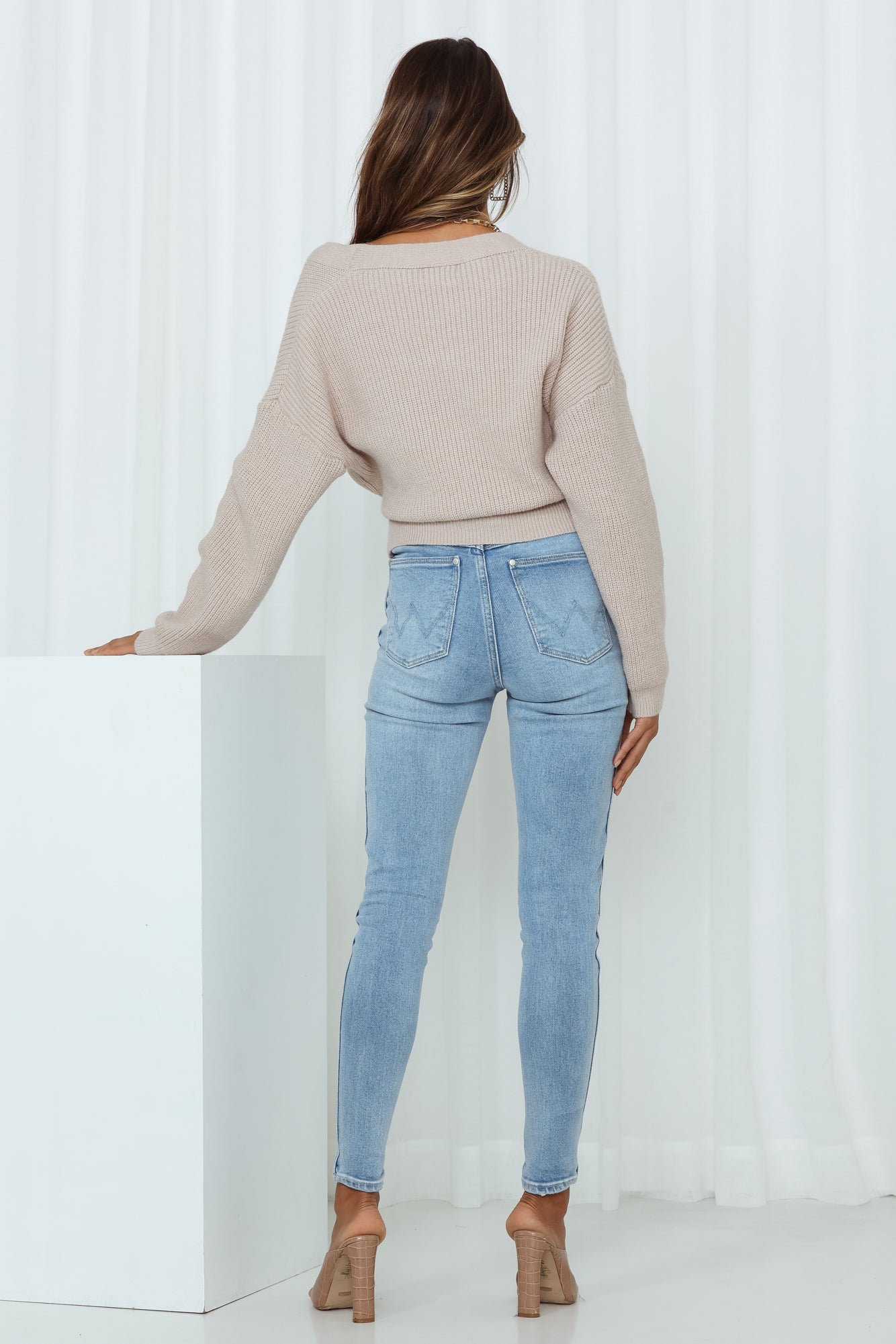 Who knew knits could be so perf for the warmer seasons? The Further From Here Knit is your new cozy go-to. featuring a wrap style that ties at the side and balloon sleeves that gather at the cuff. Style it with black high waist pants and a black stiletto heel!