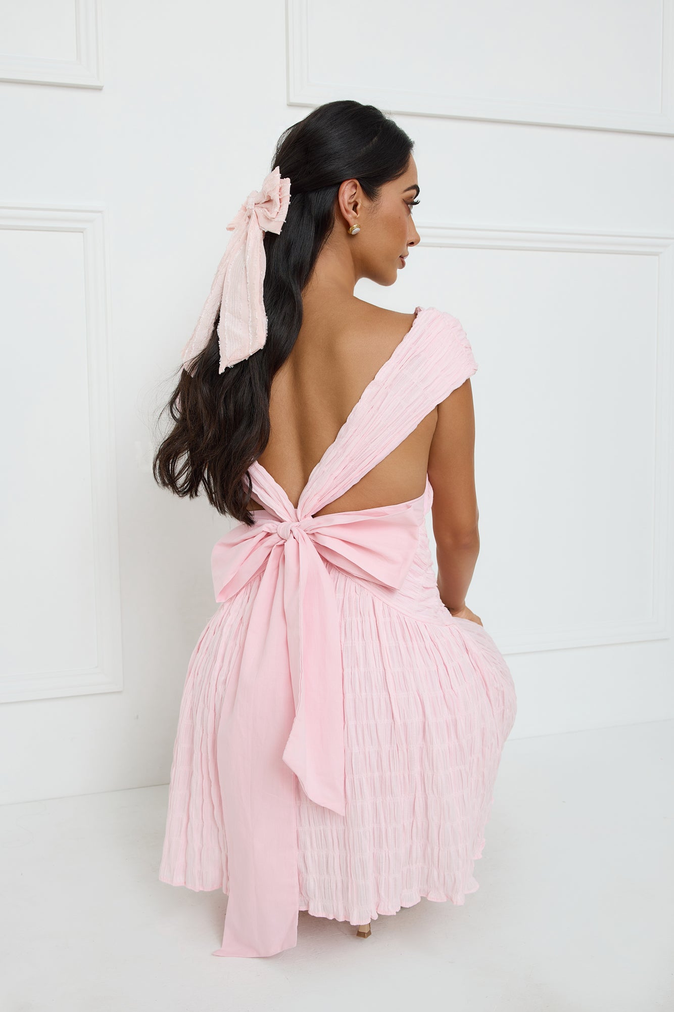The Light And Luxe Mini Dress is a perfect blend of chic and playful! With a flattering V-neck. flowy skirt. and a tie-back detail. it's a fun and fresh look that'll turn heads wherever you go! Style with heels.