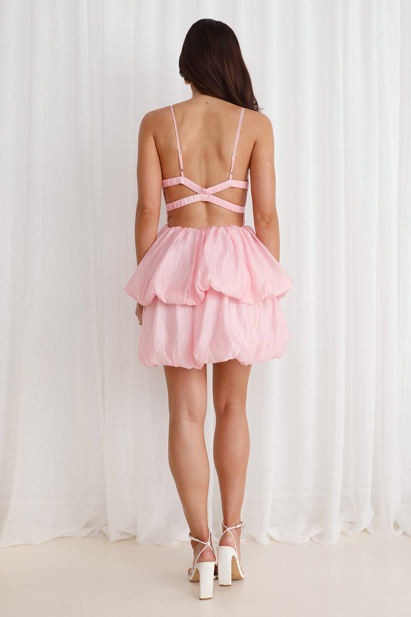 You're about to set trends. lovely. The Lively Atmosphere Bubble Mini Dress features an elastic bodice. an open back. and a gorgeous tiered bubble skirt that's trending now. Style with heels and all your confidence.