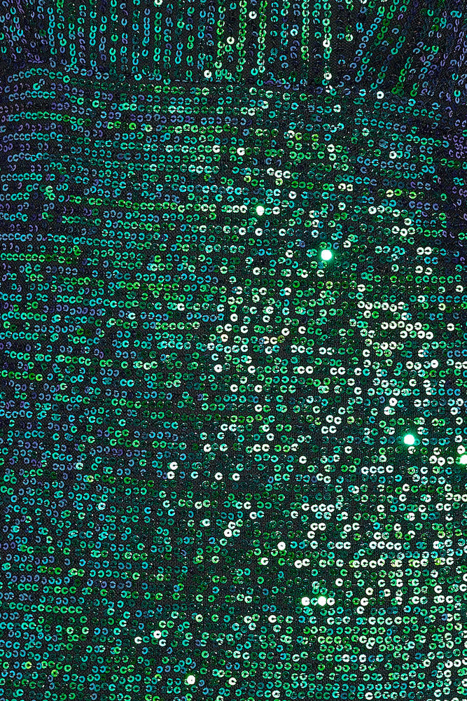 - Black dress. green iridescent sequins.