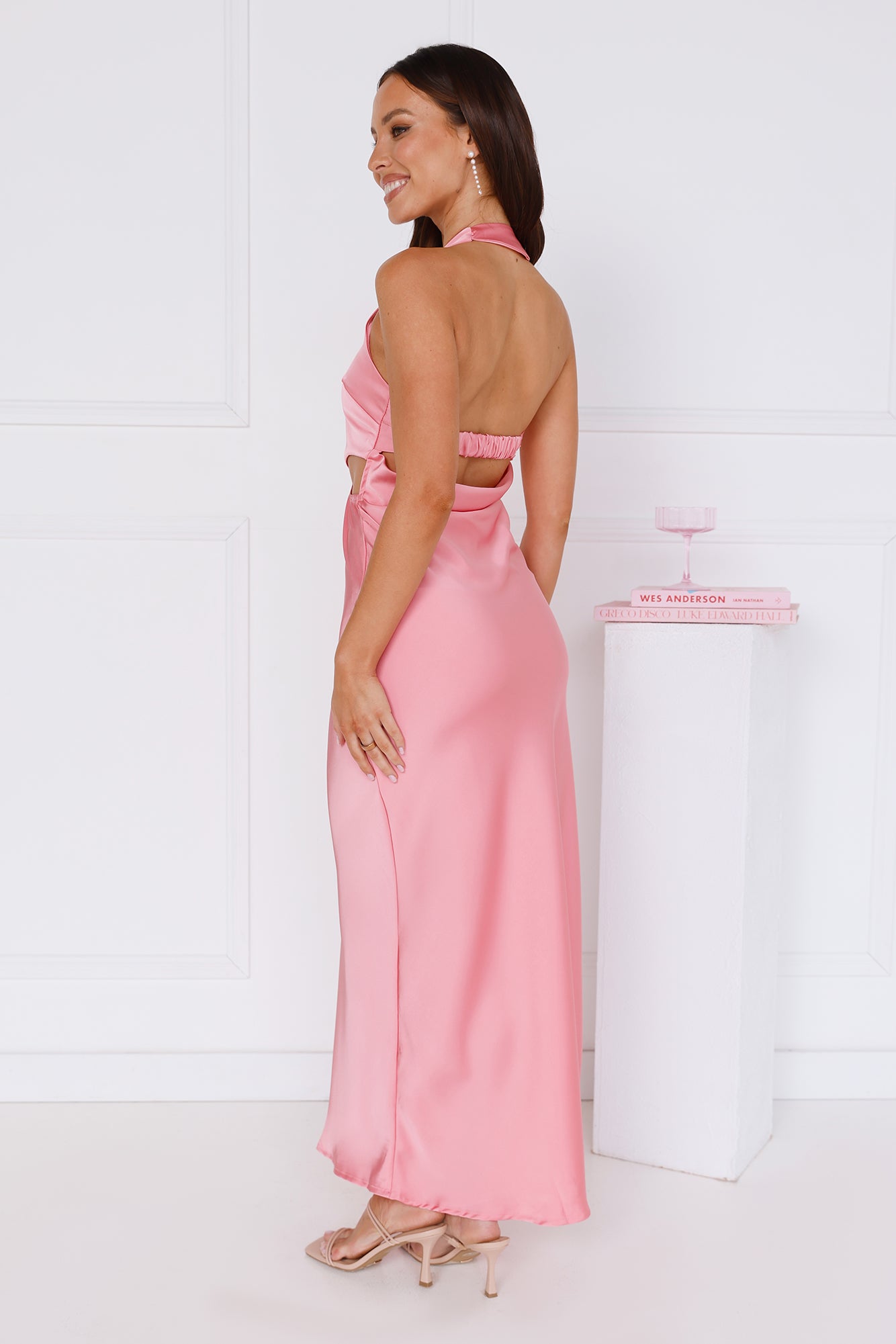 Be seen in the Love At Last Halter Satin Maxi Dress at your fancy event. Featuring a halter with a silver clasp closure. a waist cut out and an open back with a cowl design. Style with heels to feel fabulous.