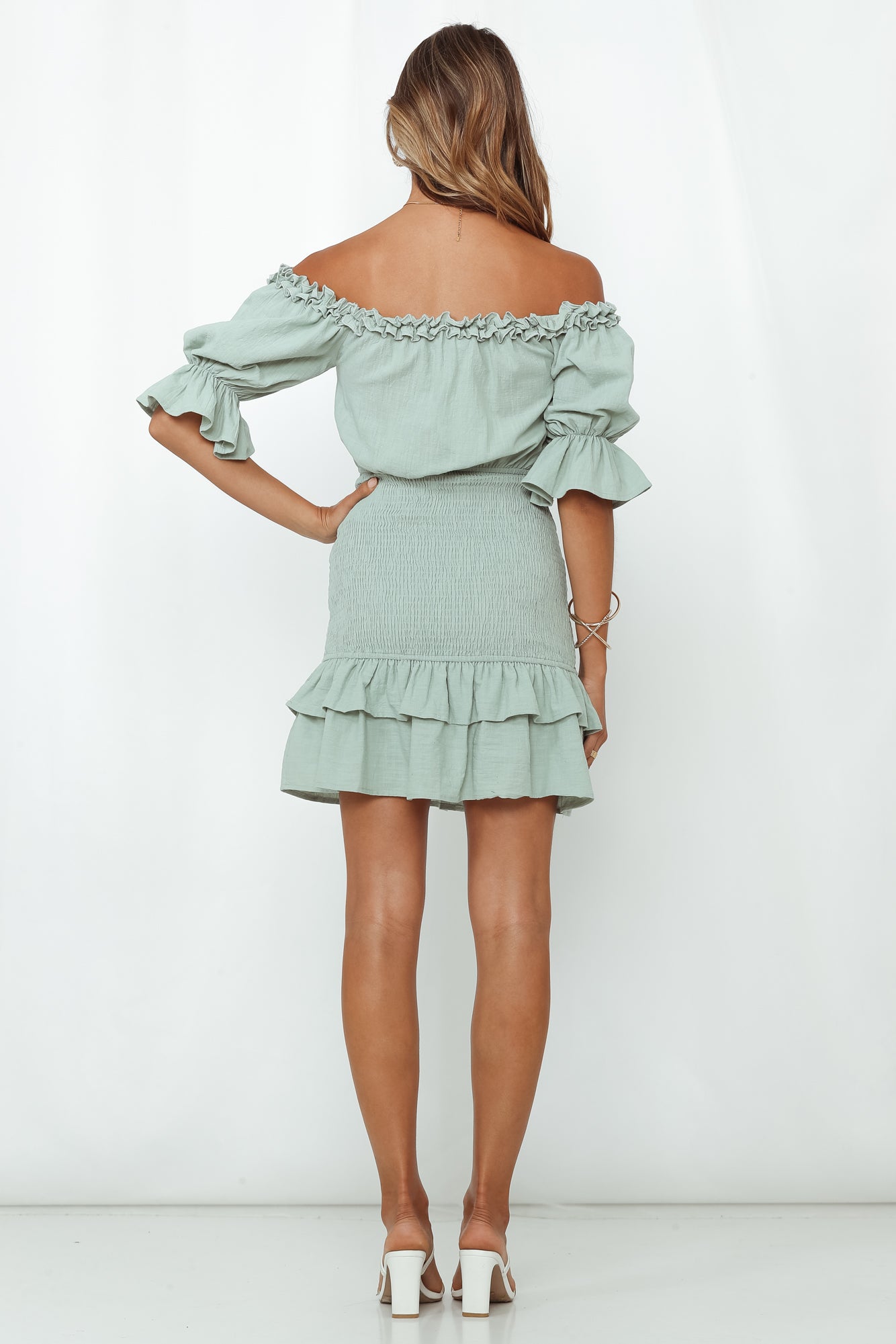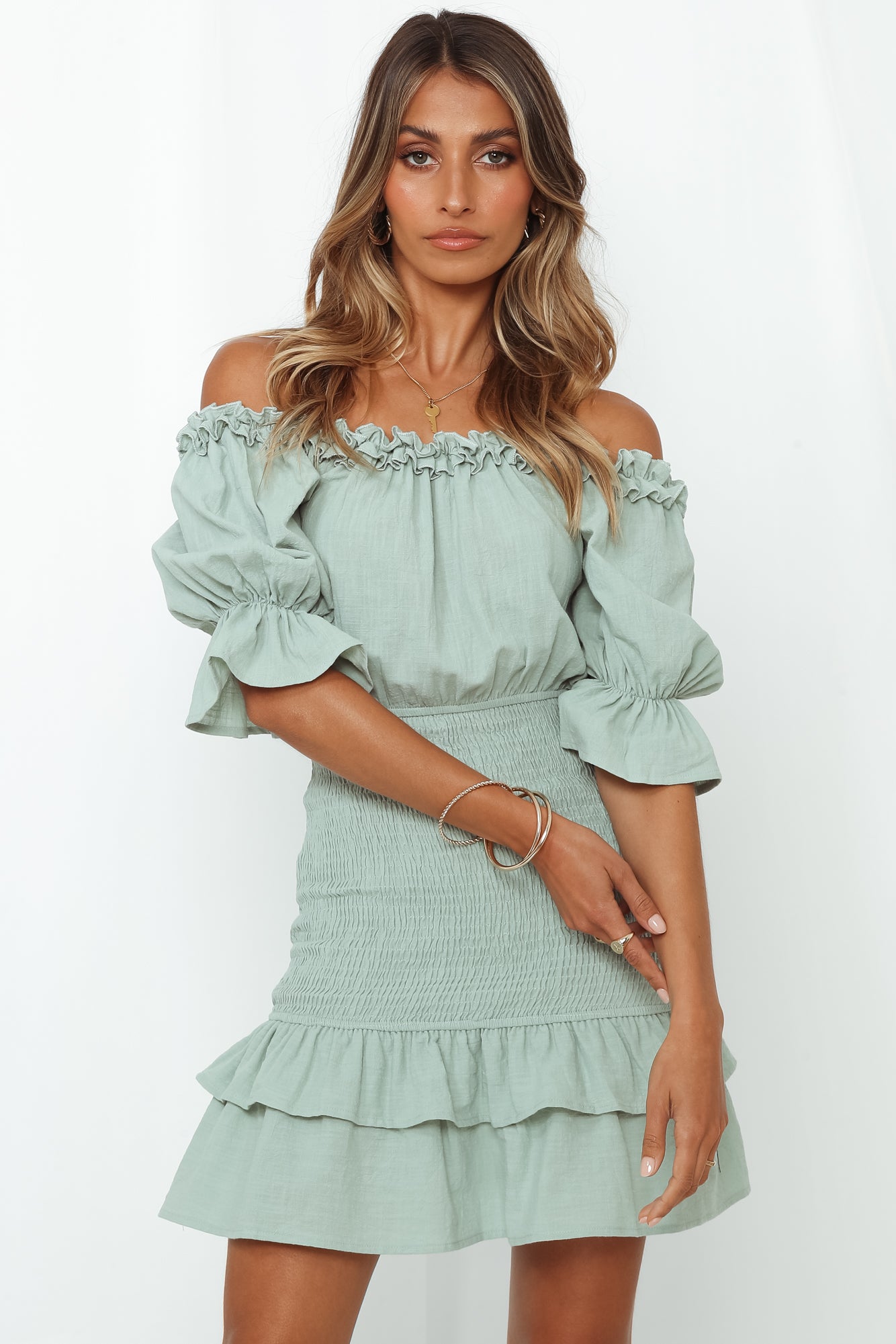 - Sage mini dress.