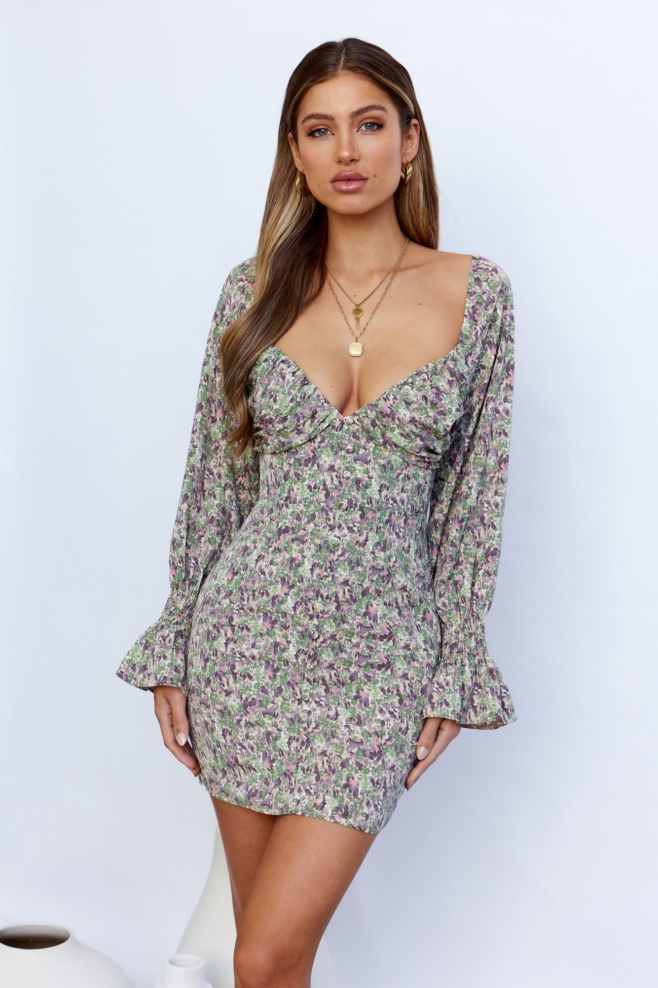 Party season is here and the Love First Dress is at the top of our list! This long sleeve mini dress showcases a beautiful floral print. long sleeves with a frilled cuff and a dainty button detail going down from the bust. We are pairing this with thin nude heels and big bouncy curls.