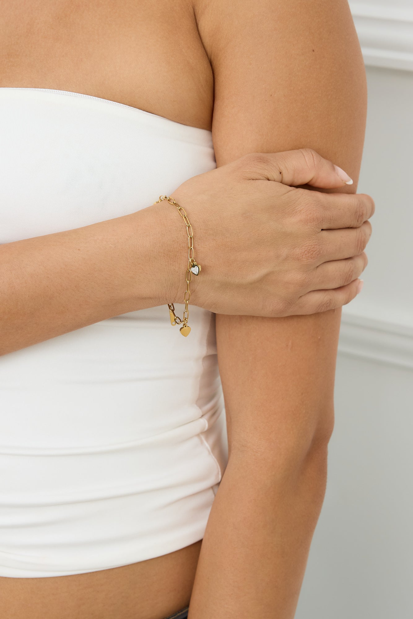 The Love Like This Bracelet is a dazzling expression of romance and elegance. Featuring a 22cm gold-finish link chain adorned with delicate love heart charms and sparkling diamantes. this bracelet adds a touch of charm and sophistication to any look. Perfect for stacking or wearing solo as a statement of love and style.