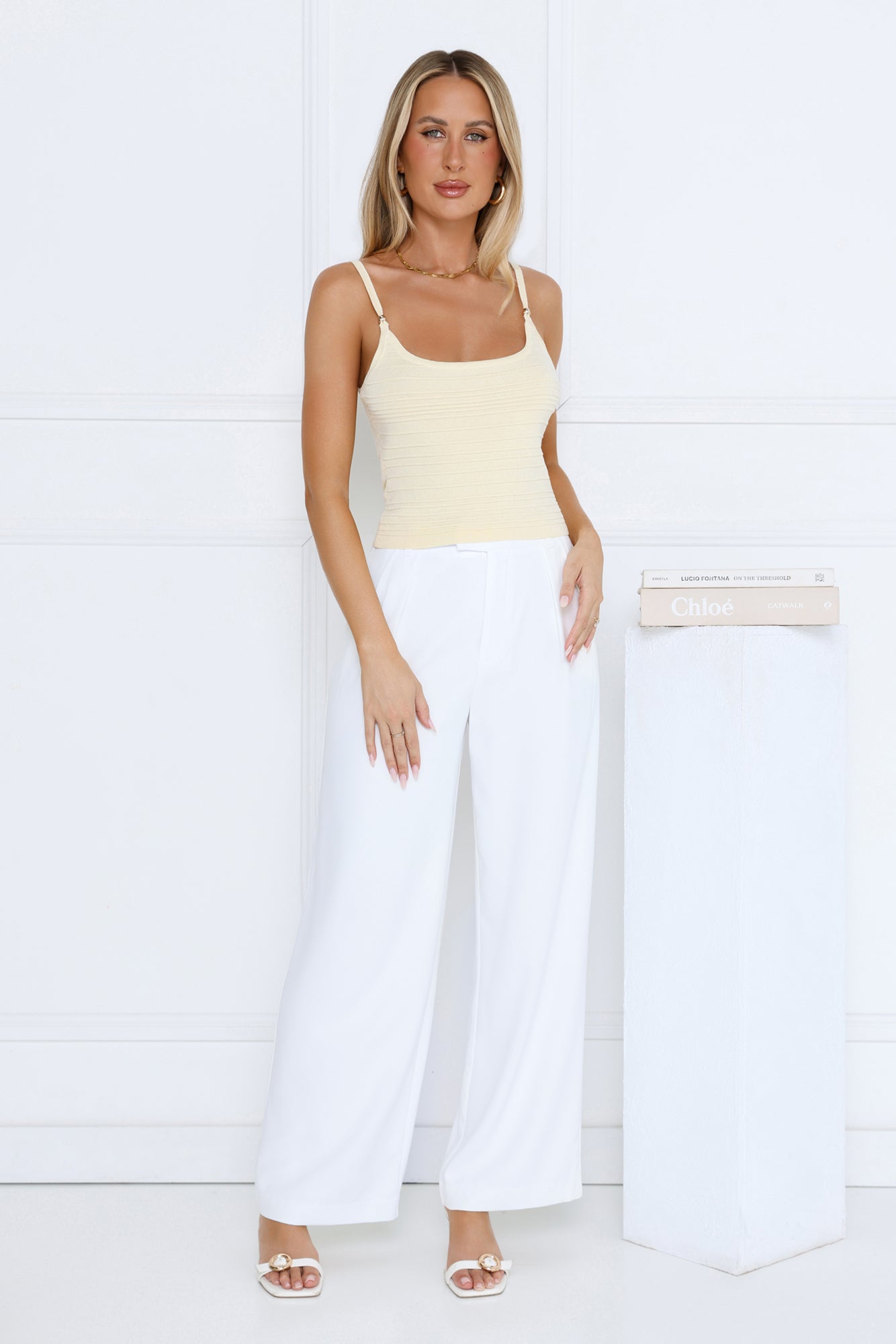Step into sunshine with the Love Lines Cami Top. made from stretchy textured knit with a sleek slip-on fit that gives you an effortlessly cute and laid-back look. Style with the matching skirt and heels.