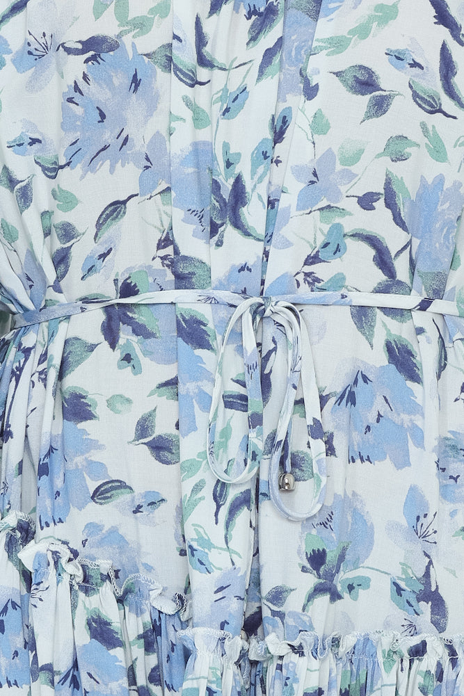 - Blue and green print dress.