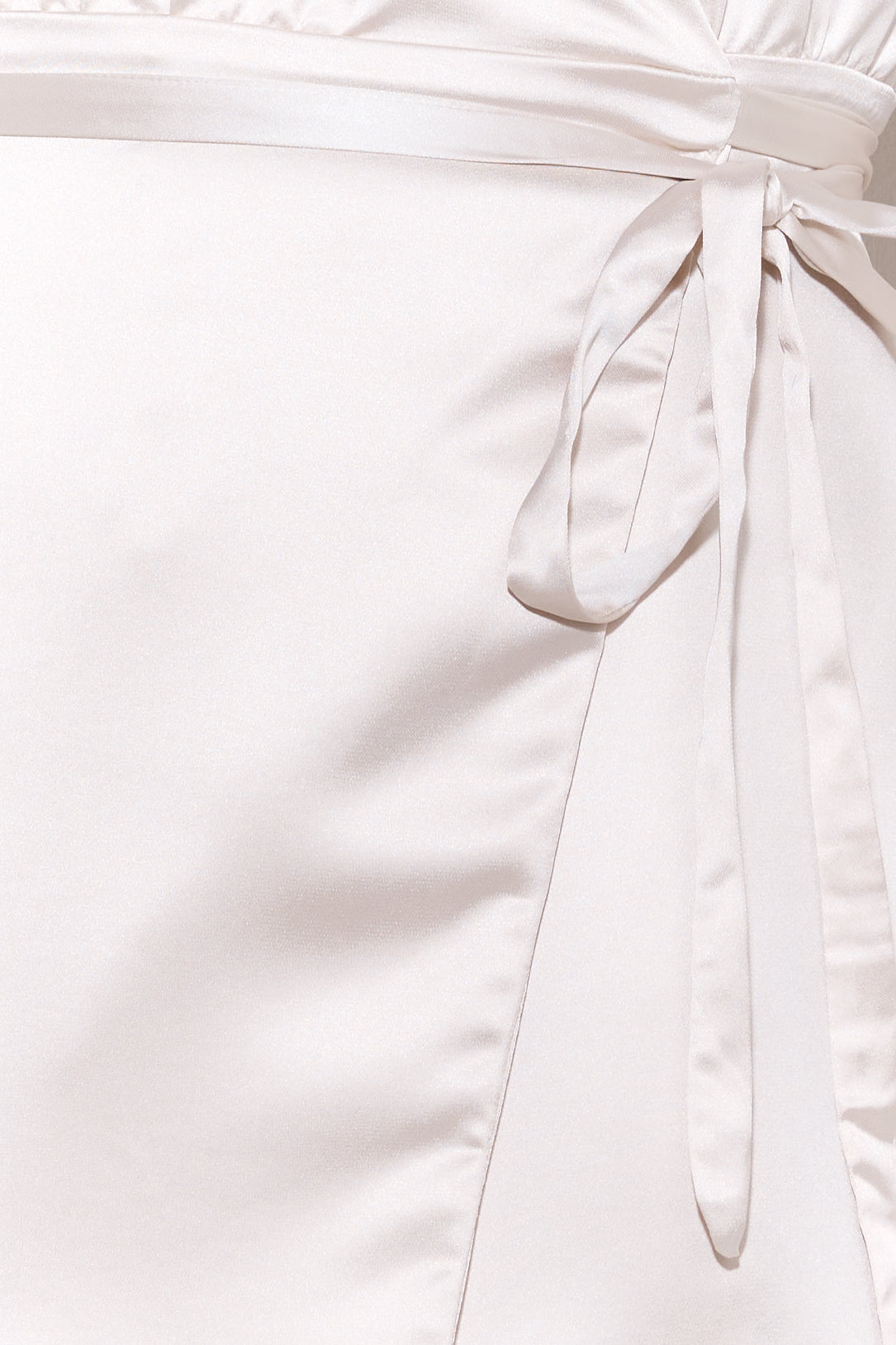 Steal all the attention. girl. The Love To Dance Satin Mini Dress features a wrap design and waist tie-up. Style with heels for a look we love.