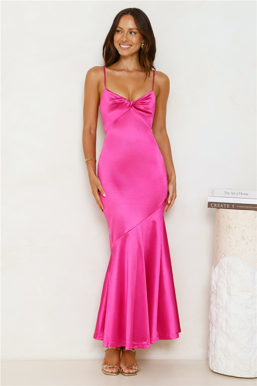 For events that deserve a little extra dazzle. be seen in the Love To Mesmerise Satin Maxi Dress. It features a twist detail to the top. stretchy satin and a mermaid silhouette. Style with heels and curls.
