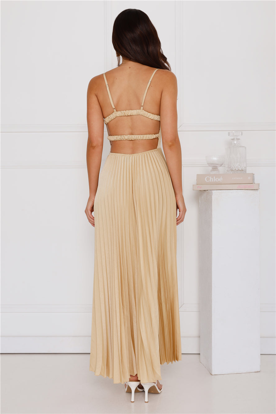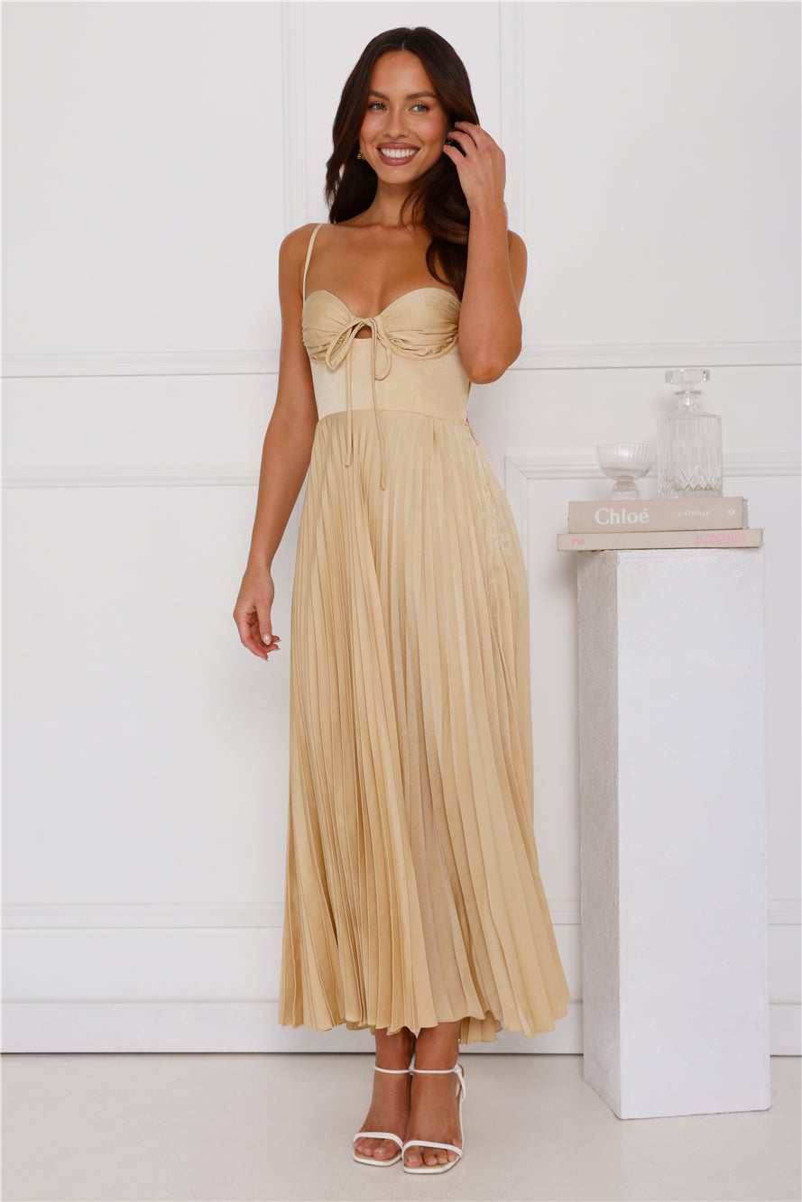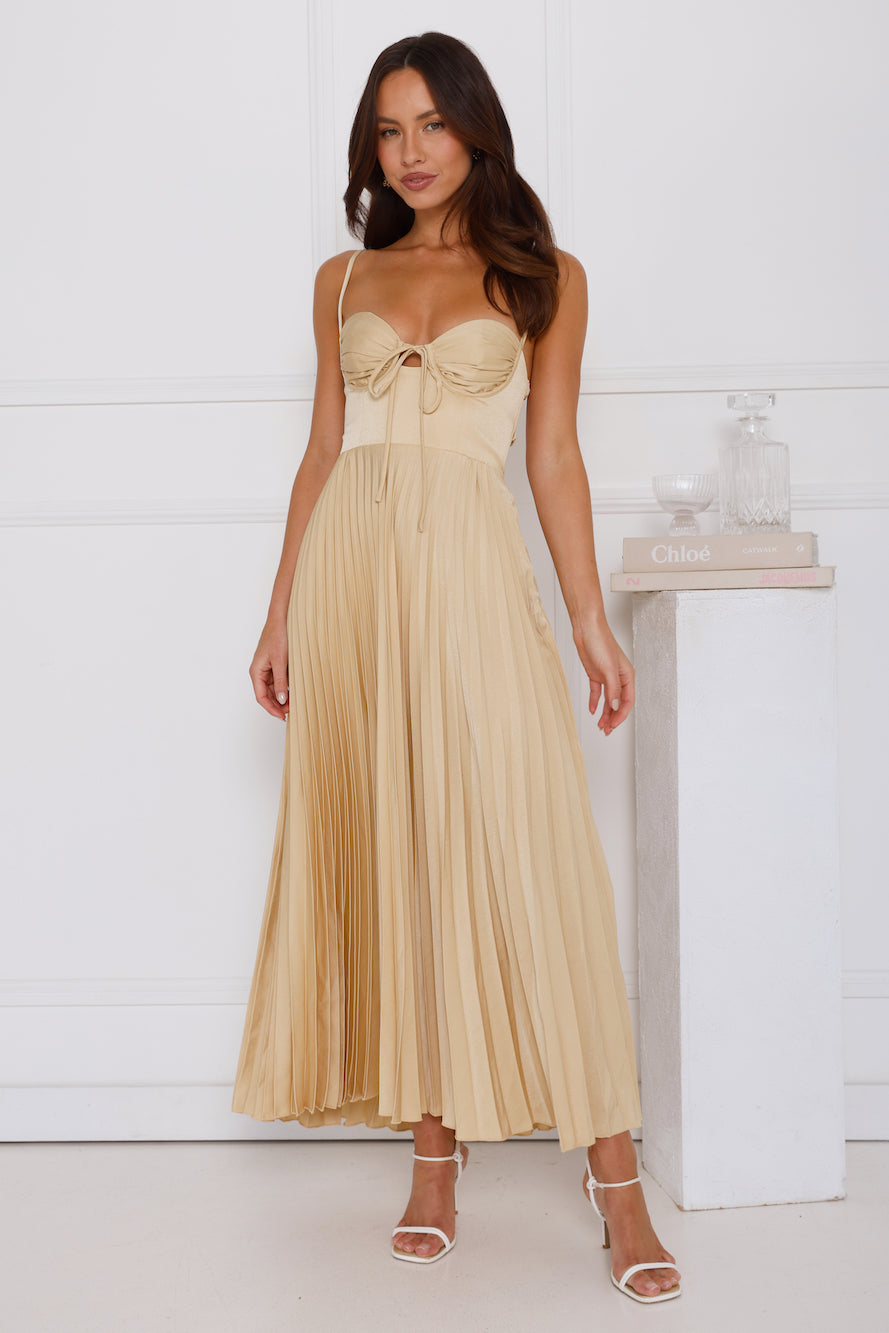 Classy and chic. be seen in the Lovely Soiree Maxi Dress. Featuring a gorgeous pleated silhouette. an elastic back and a front tie. Style with heels and curls for a 'fit you'll want pics' in!