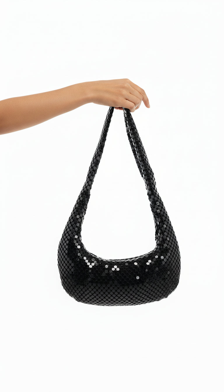 Bring all the glam vibes. girl. The BILLINI Luna Shoulder Bag features a soft. relaxed design and glowmesh material. Style with a mini dress and heels.