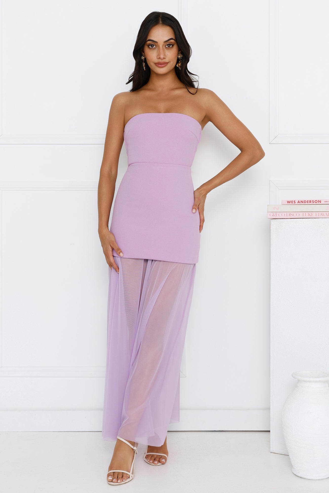 Set trends in the Lush Allure Strapless Maxi Dress. This dress is sure to make a statement with its sheer mesh underlayer. strapless design and elastic back. Style with heels for all the attention on you!