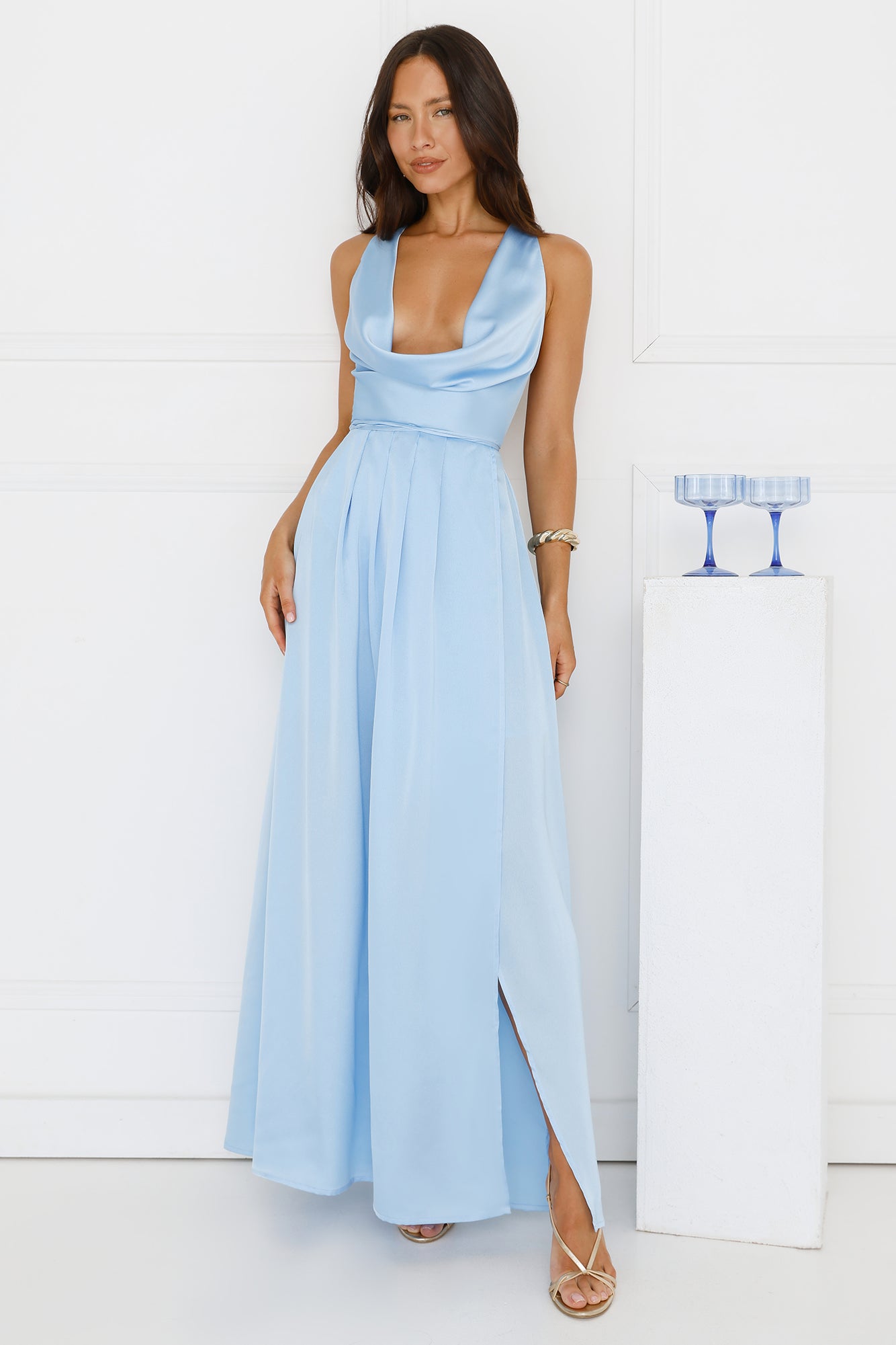 Lush Whispers Satin Maxi Dress Blue