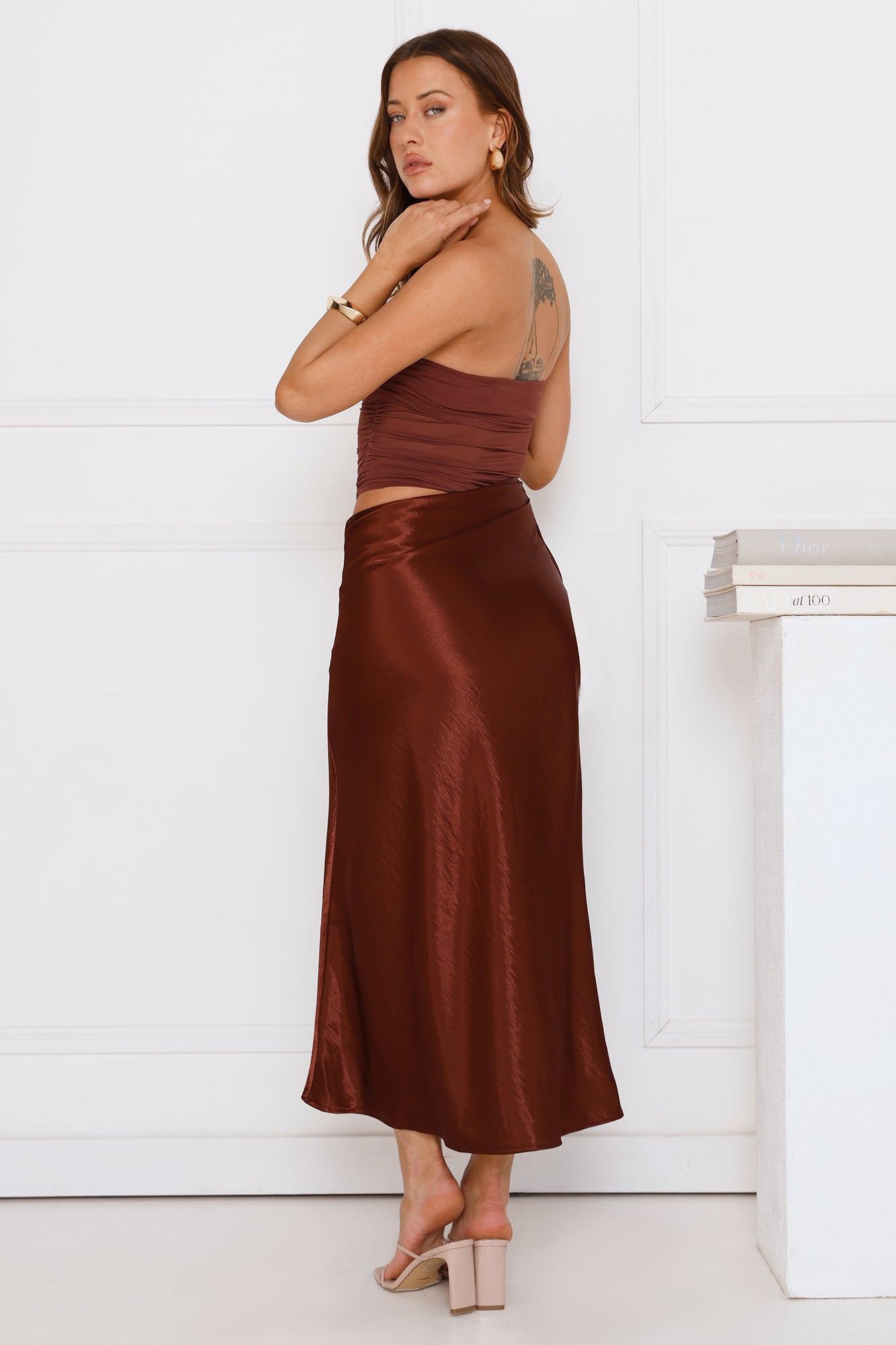 - Satin skirt.