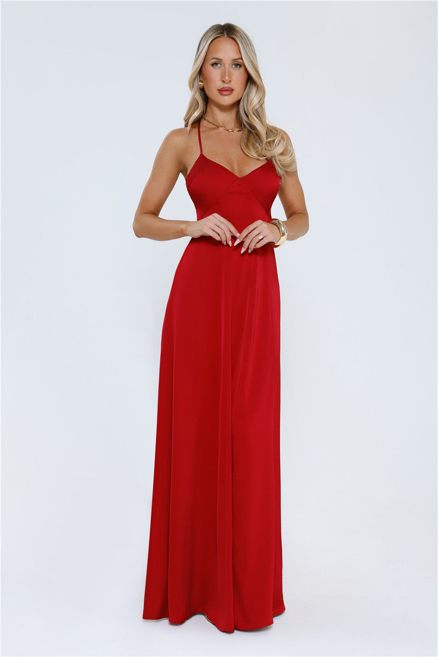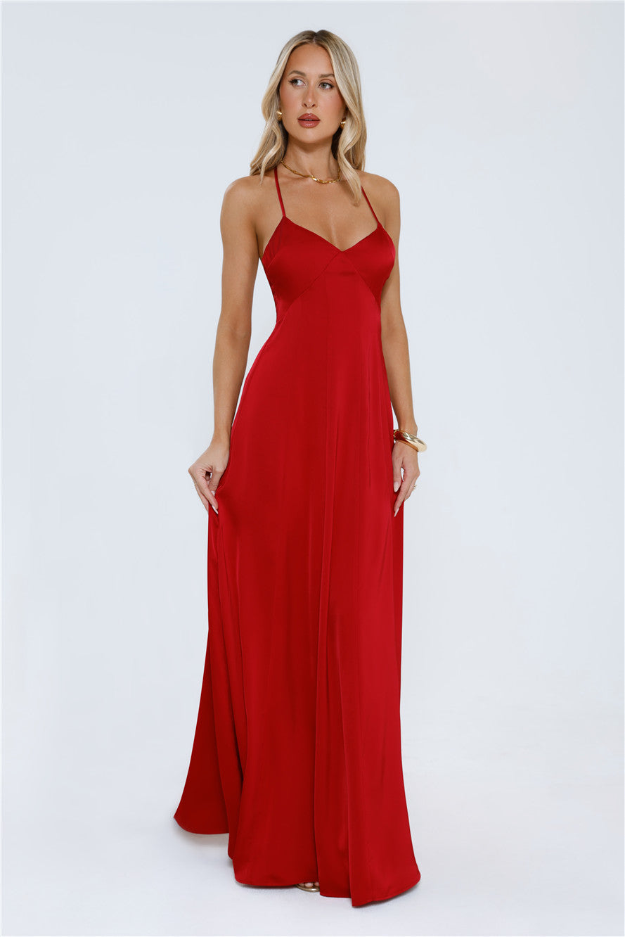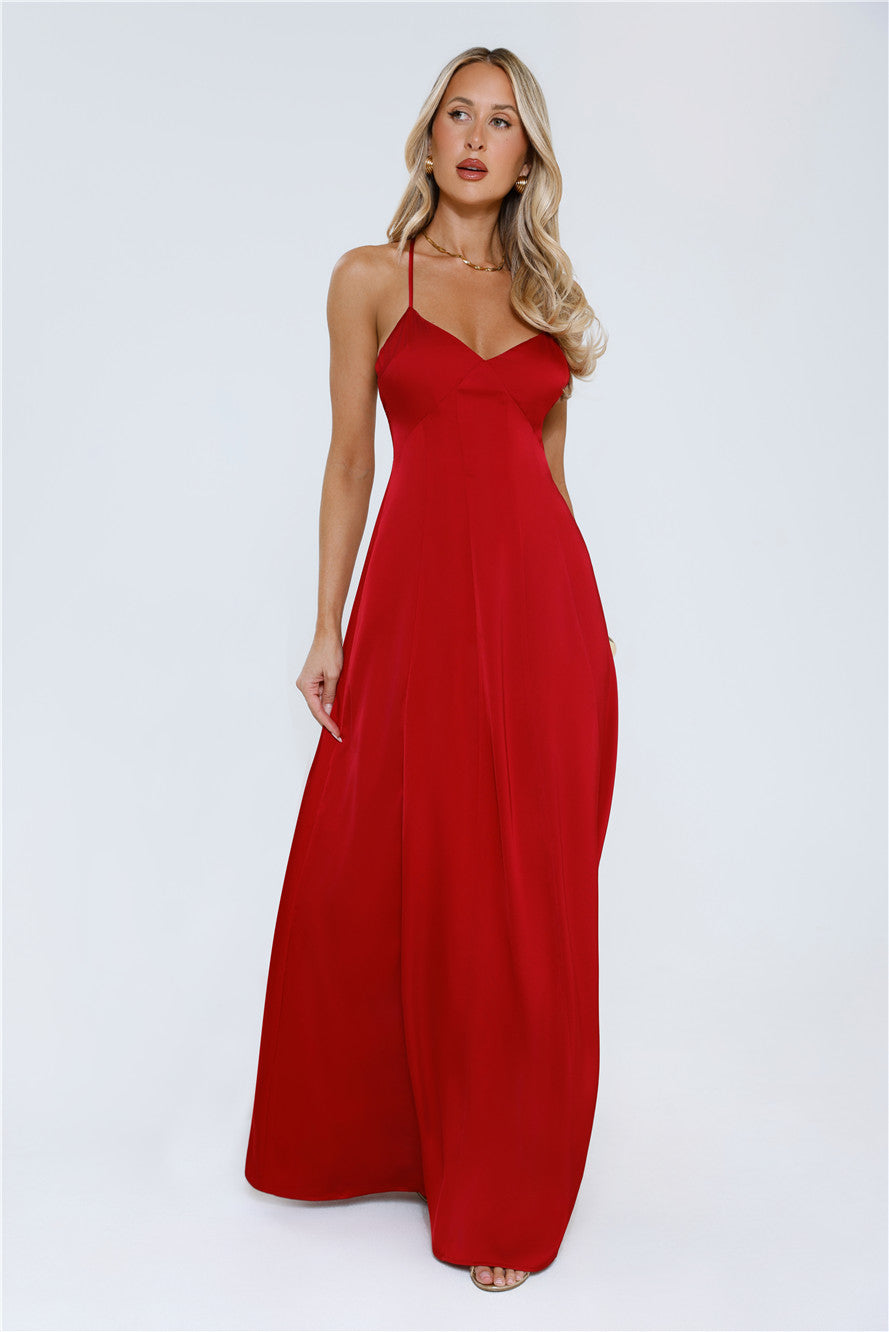 Embrace timeless elegance in the Luxe Horizon Satin Maxi Dress. Featuring a soft. flowy silhouette and a flattering V-neckline. this satin maxi dress exudes effortless sophistication for any special occasion. Style it with heels and a necklace for a celebration look.