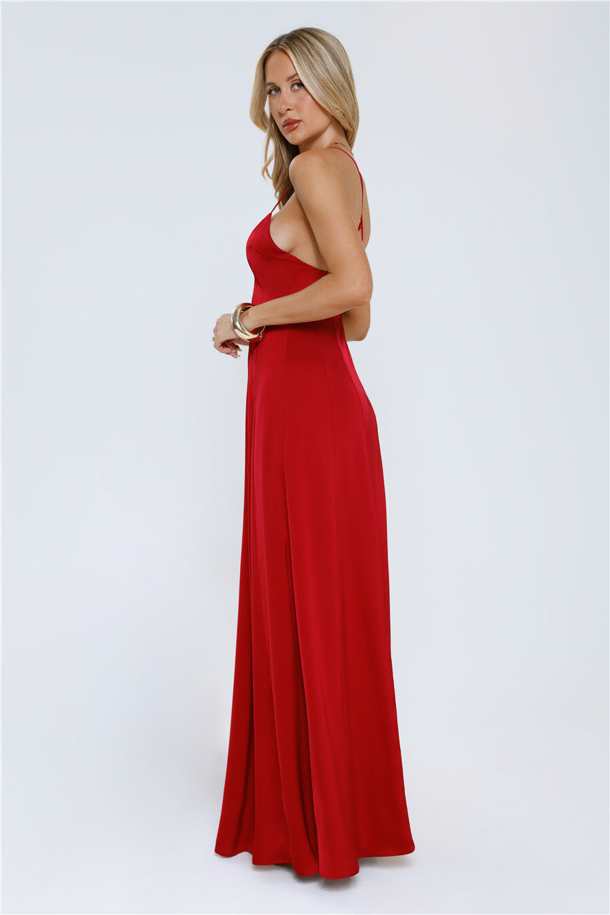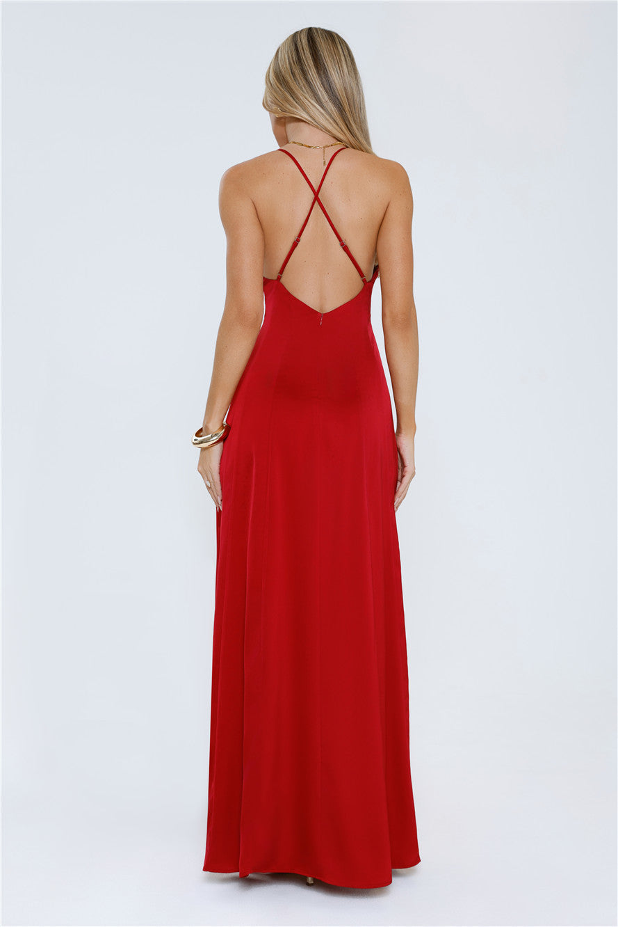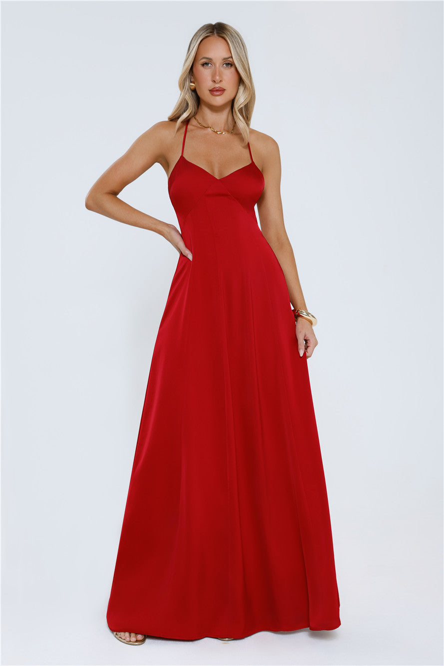 Embrace timeless elegance in the Luxe Horizon Satin Maxi Dress. Featuring a soft. flowy silhouette and a flattering V-neckline. this satin maxi dress exudes effortless sophistication for any special occasion. Style it with heels and a necklace for a celebration look.
