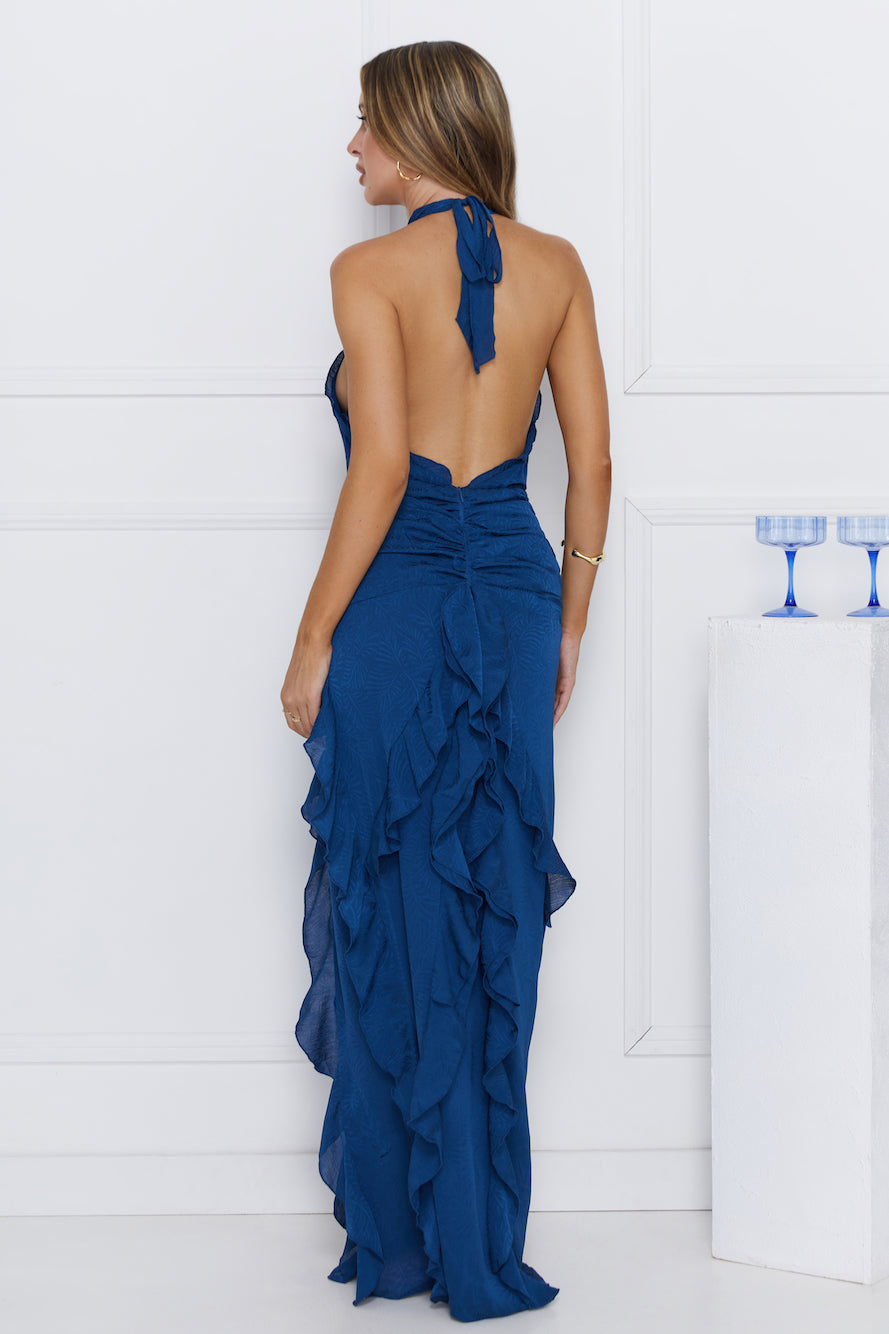 Enter the party and impress in the Luxe Mood Halter Maxi Dress. Featuring a gorgeous V-neckline. a halterneck tie and a split to the skirt. Style with heels and curls.