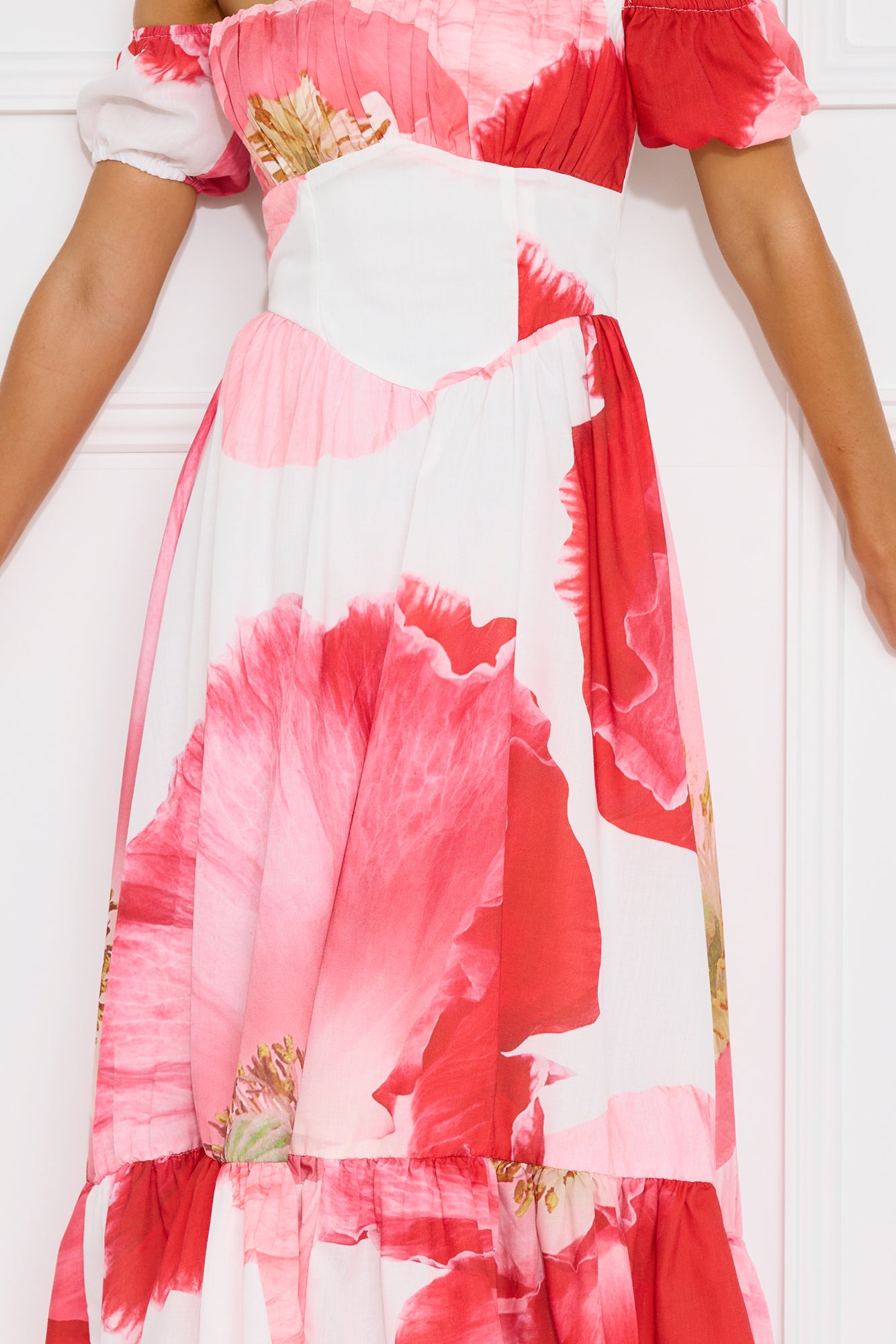 - Off-shoulder elastic sleeves.