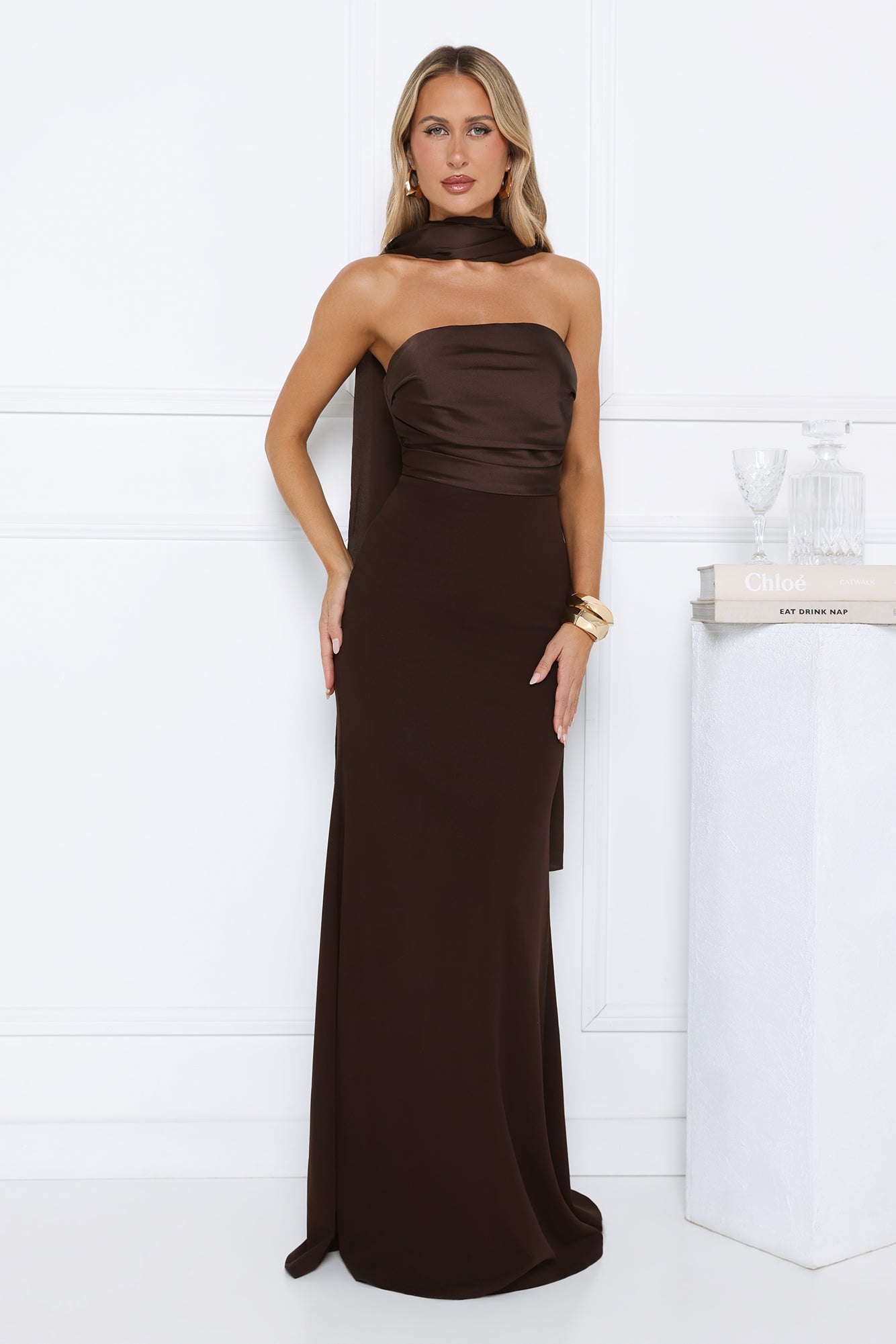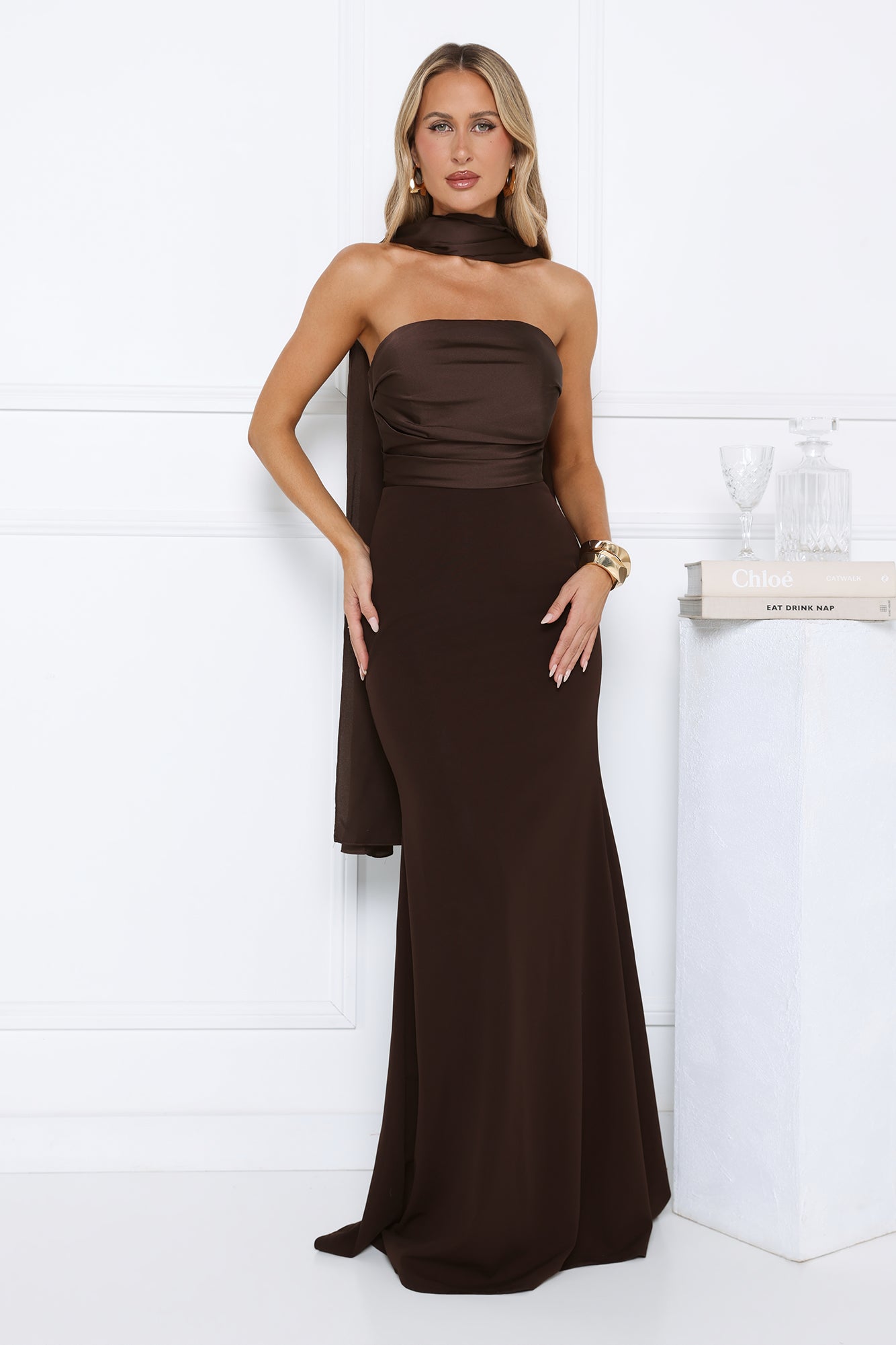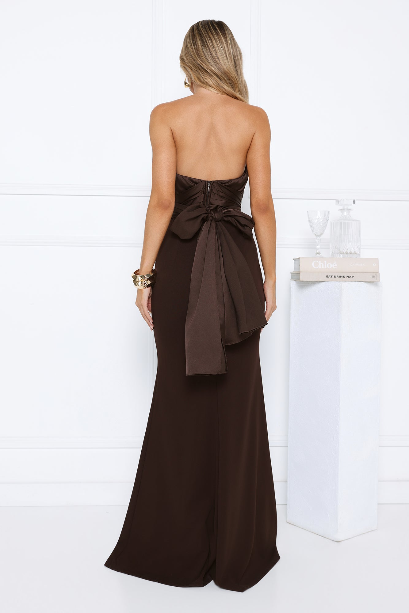 Make a statement in the Luxe Nights Strapless Maxi Dress. Featuring a strapless neckline and flowing maxi silhouette. this dress is effortlessly chic and perfect for evening occasions. The satin tie to the back can be styled multiple ways for added versatility and elegance. Style it with strappy heels and a sleek clutch for a polished night-out look.