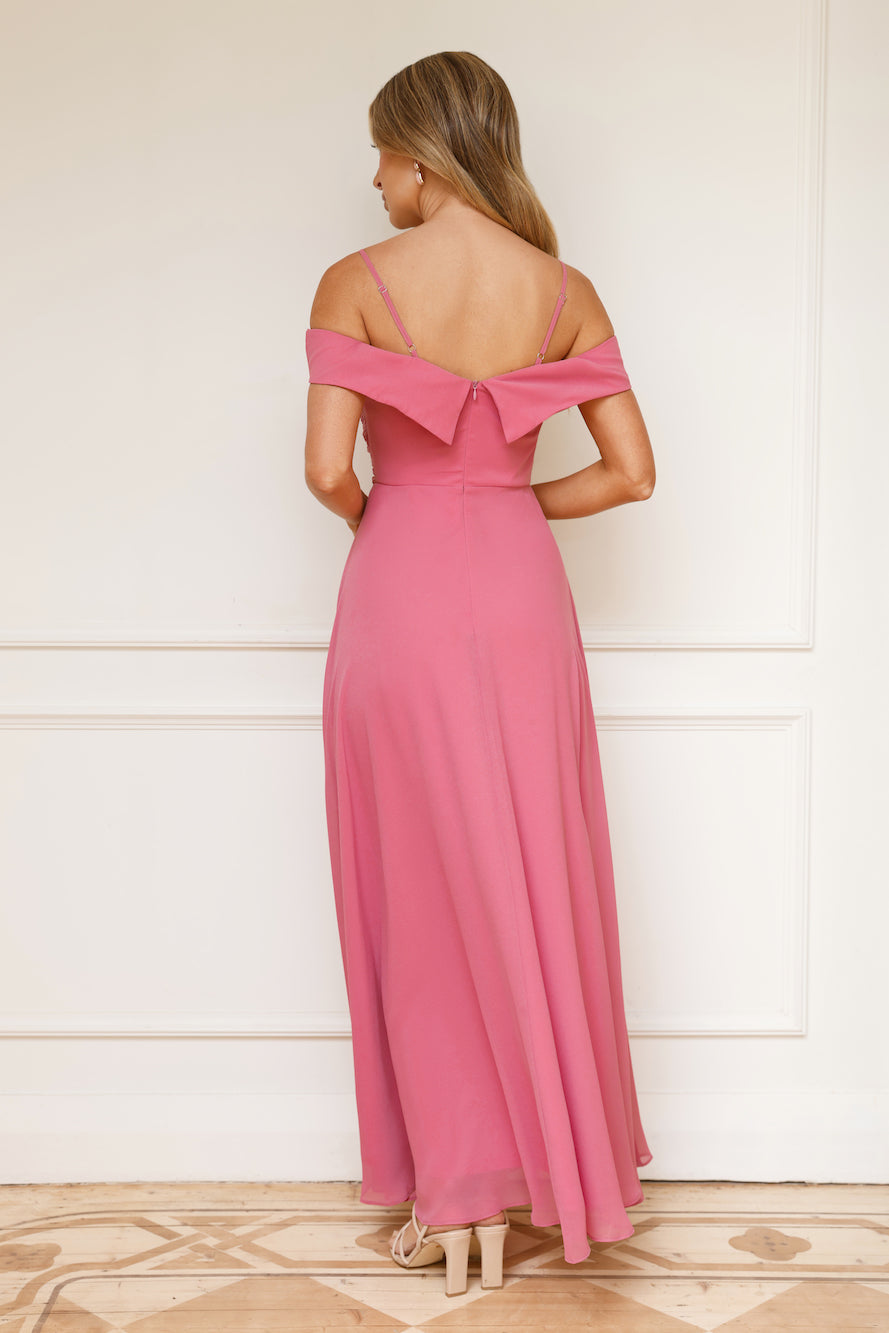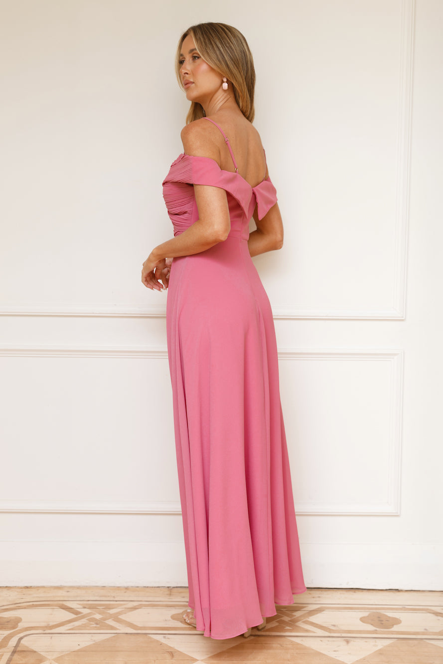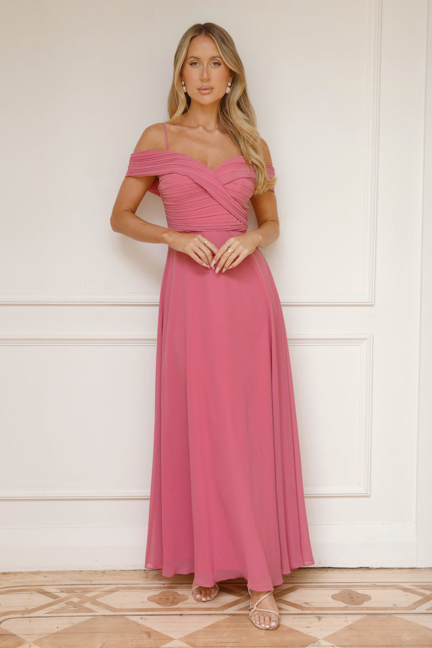 Be a showstopper every step of the way in the Luxurious Aurora Maxi Dress. Featuring an off-the-shoulder design with straps. a pleated top and a gorgeous flowy skirt. Step into your next event with this alluring 'fit.