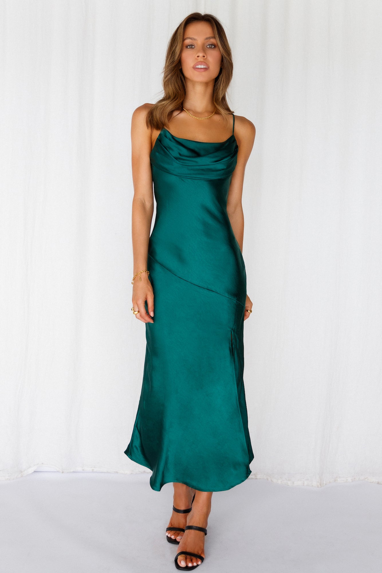 Poorly dressed? Sorry. we don't know her! Hey Mollys babes like you are looking on fleek in our Lychee Martini Satin Midi Dress. Since we love this style so much. we're bringing it back in a big way and featuring it throughout this lush colour. It also features a flattering cowl neckline and a cheeky thigh vent for that touch of flirtiness you've been dying for! Style yours with black heels and a matching clutch.