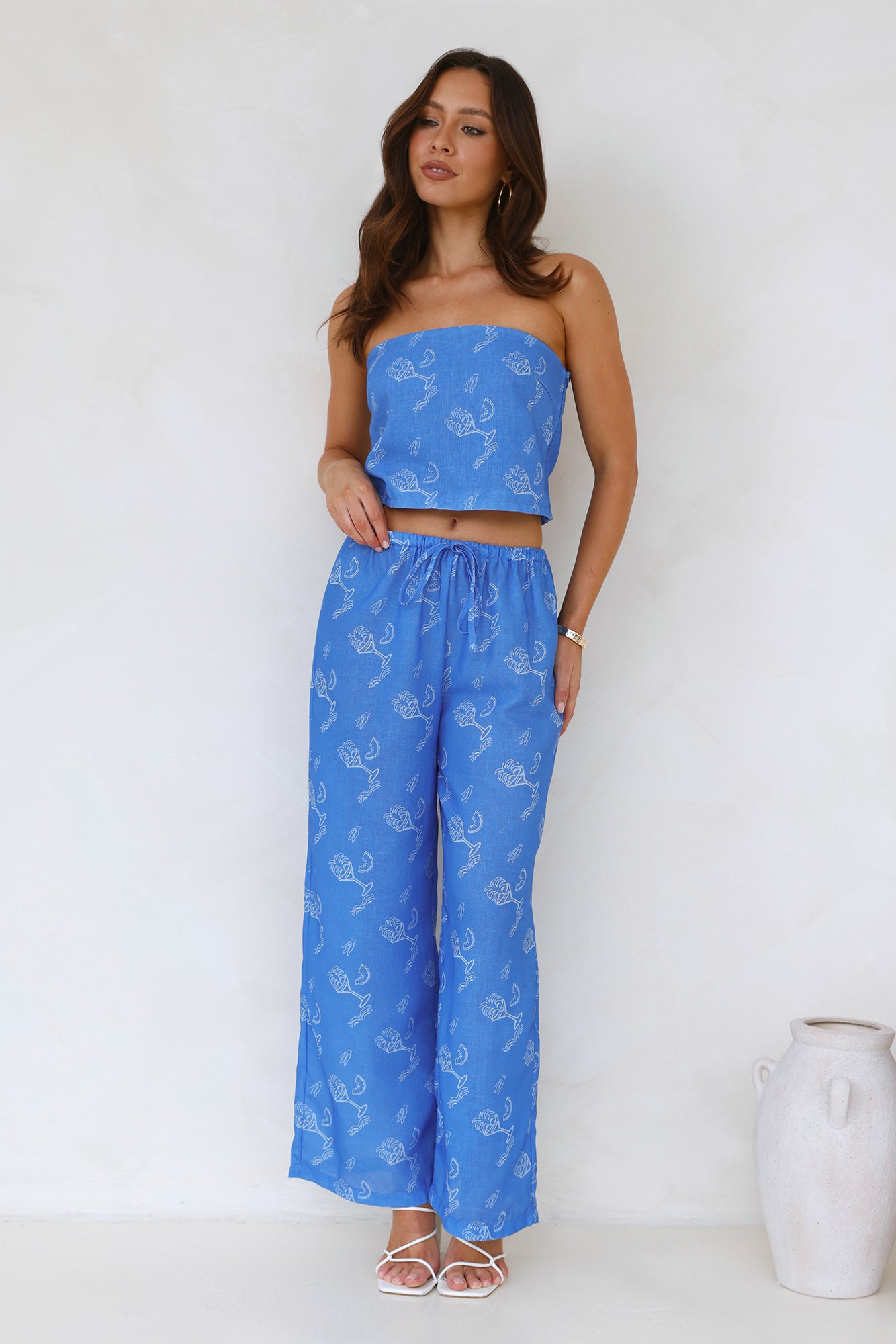 Lovely. it's the season of fun in the sun! Be seen in the Melon Mix Wide Leg Pants. featuring an elastic waistband and print that gives summer vibes! Style with the matching top for the ultimate 'fit.