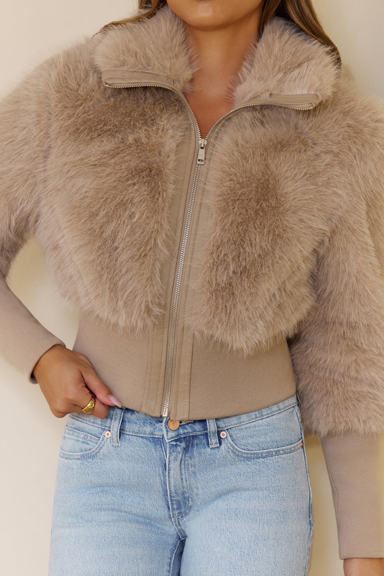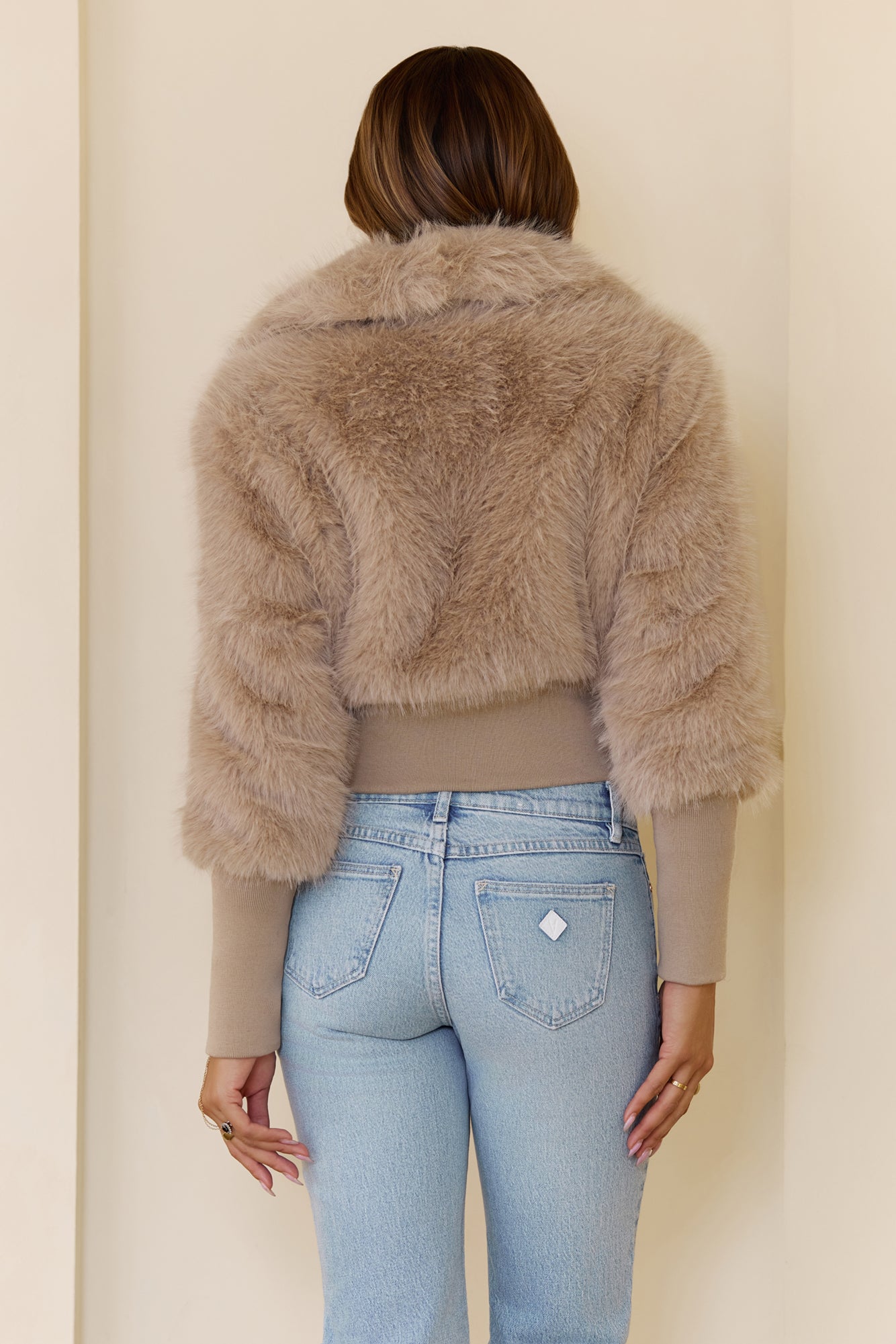 Stay cosy and chic in the Midnight Whimsy Faux Fur Jacket. Made with extra soft. plush faux fur. this cropped jacket is perfect for layering over tops for parties. brunches. or evening outings.