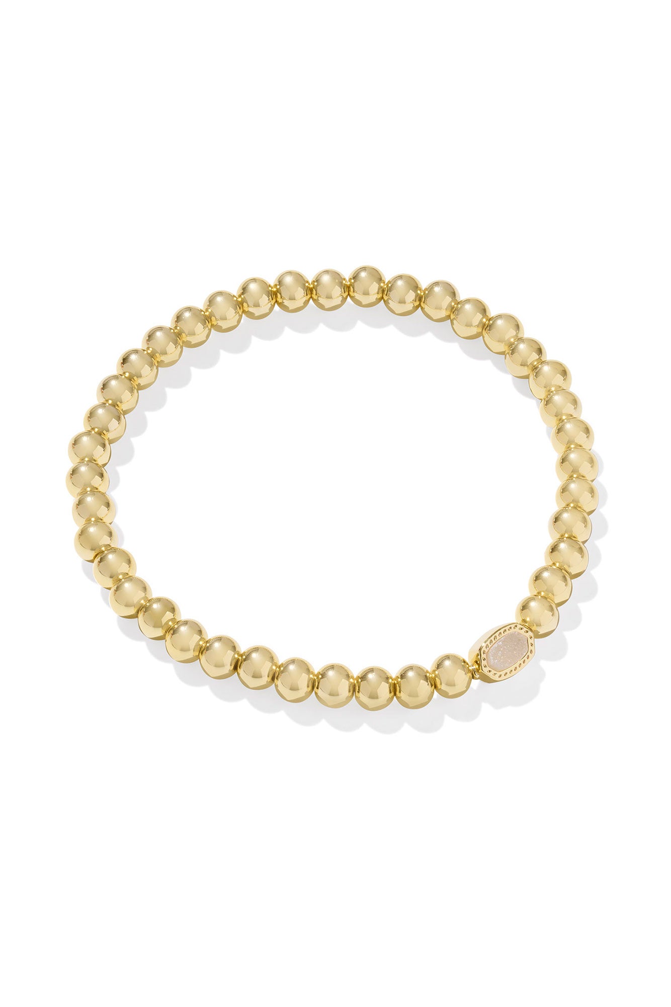 A wrist stack essential. meet the Mini Elaina Gold Stretch Bracelet. Pairing our dainty mini Elaina framed in classic hoofprint detailing with beads that offer a near-blinding shine. this piece is both chic and playful. Let it speak for itself or stack it with your favorite bracelets. you can't wear this one wrong.
