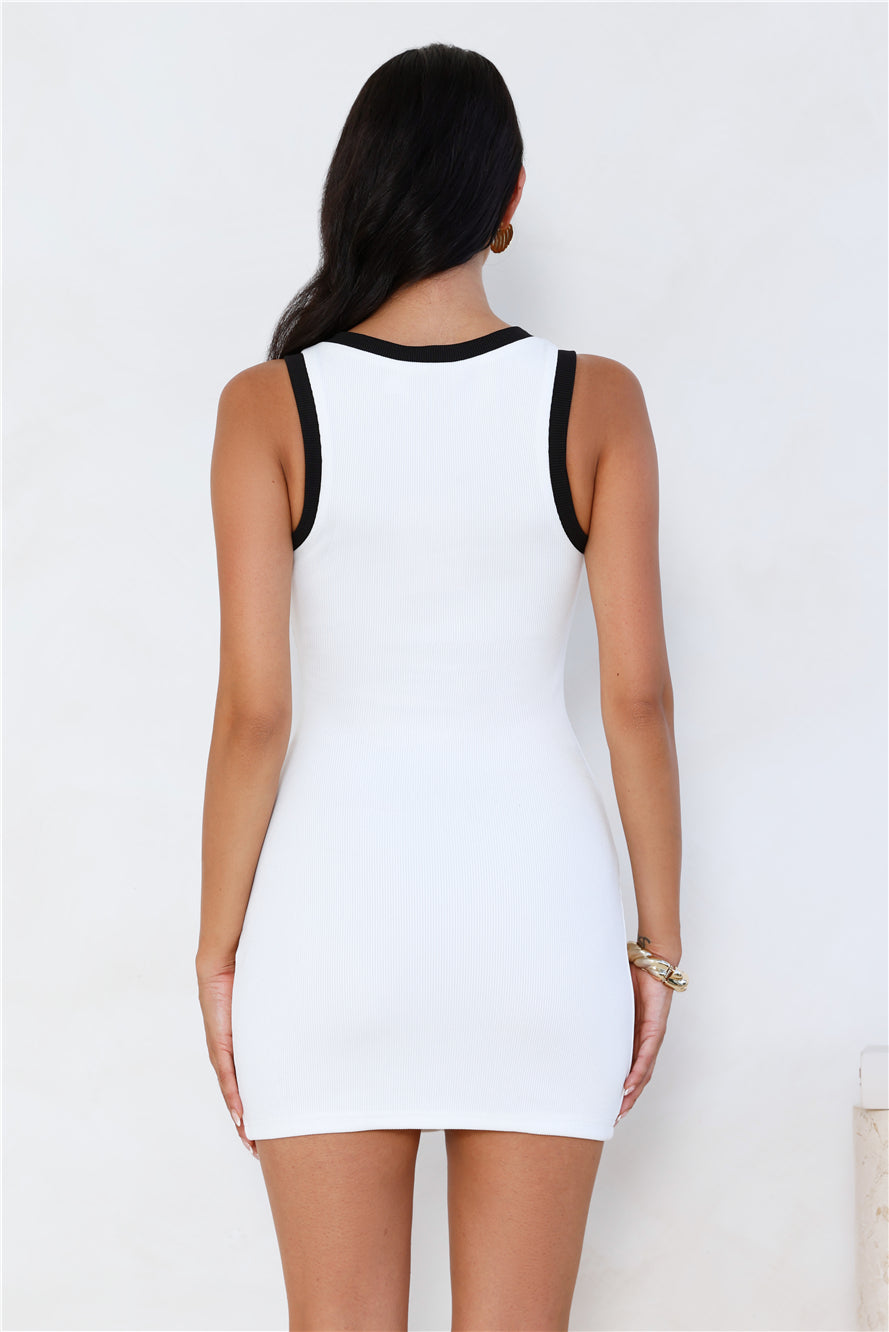 Channel your inner class with the Modern Luxury Ribbed Mini Dress. Featuring a faux flower button front and a black contrast design. Style with heels and curls.