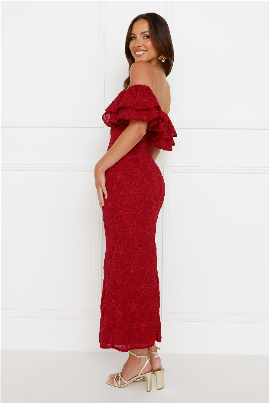 Feel like your best self when you style the Moment Of Dance Off Shoulder Maxi Dress. Featuring elastic off-shoulder sleeves. boning to the bodice and an inner grip. Style with heels for a dreamy 'fit.