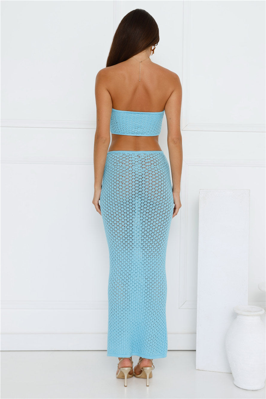 Moonlit Shores Crochet Midi Skirt Aqua