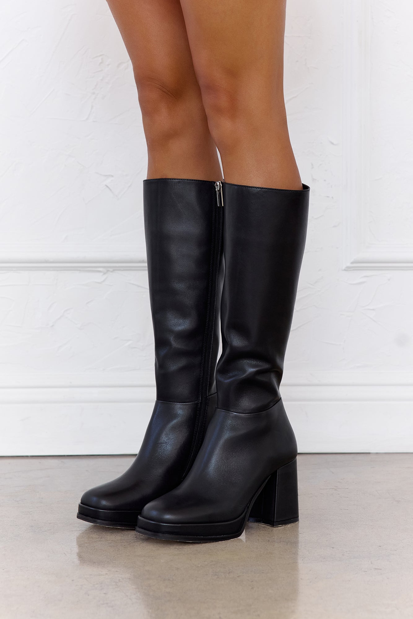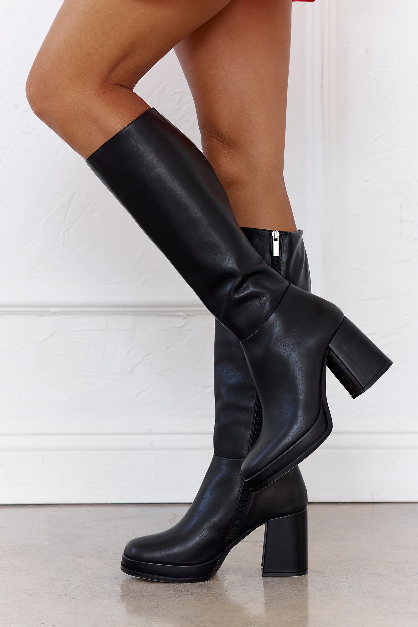 Meet your new statement boots — the Mystery Boots. Featuring a 3.25-inch heel and a 1-inch platform. they give you just the right lift with all-day comfort. Crafted from luxe leather. these boots are perfect for elevating mini skirts. dresses. or sleek denim looks.
