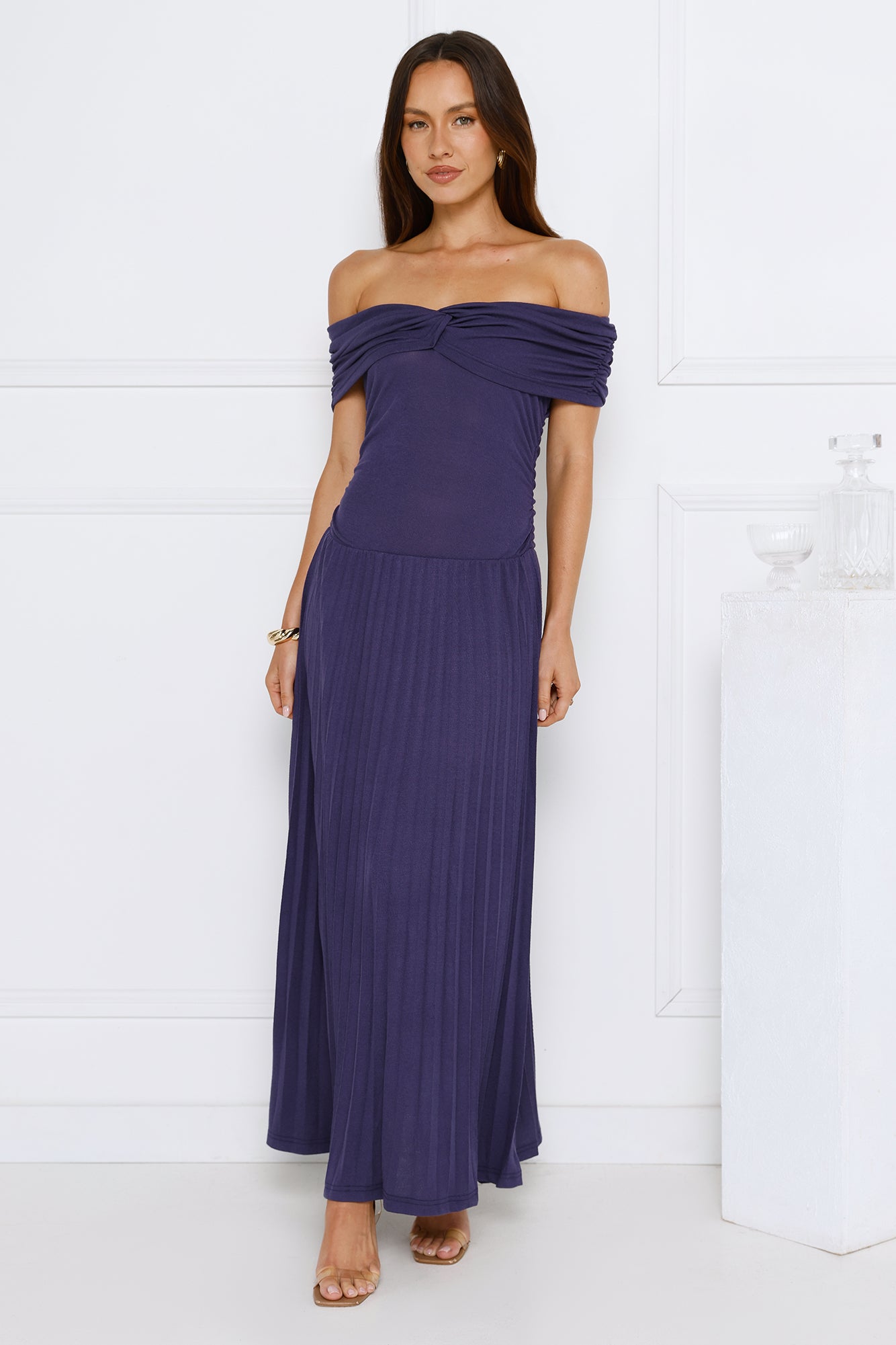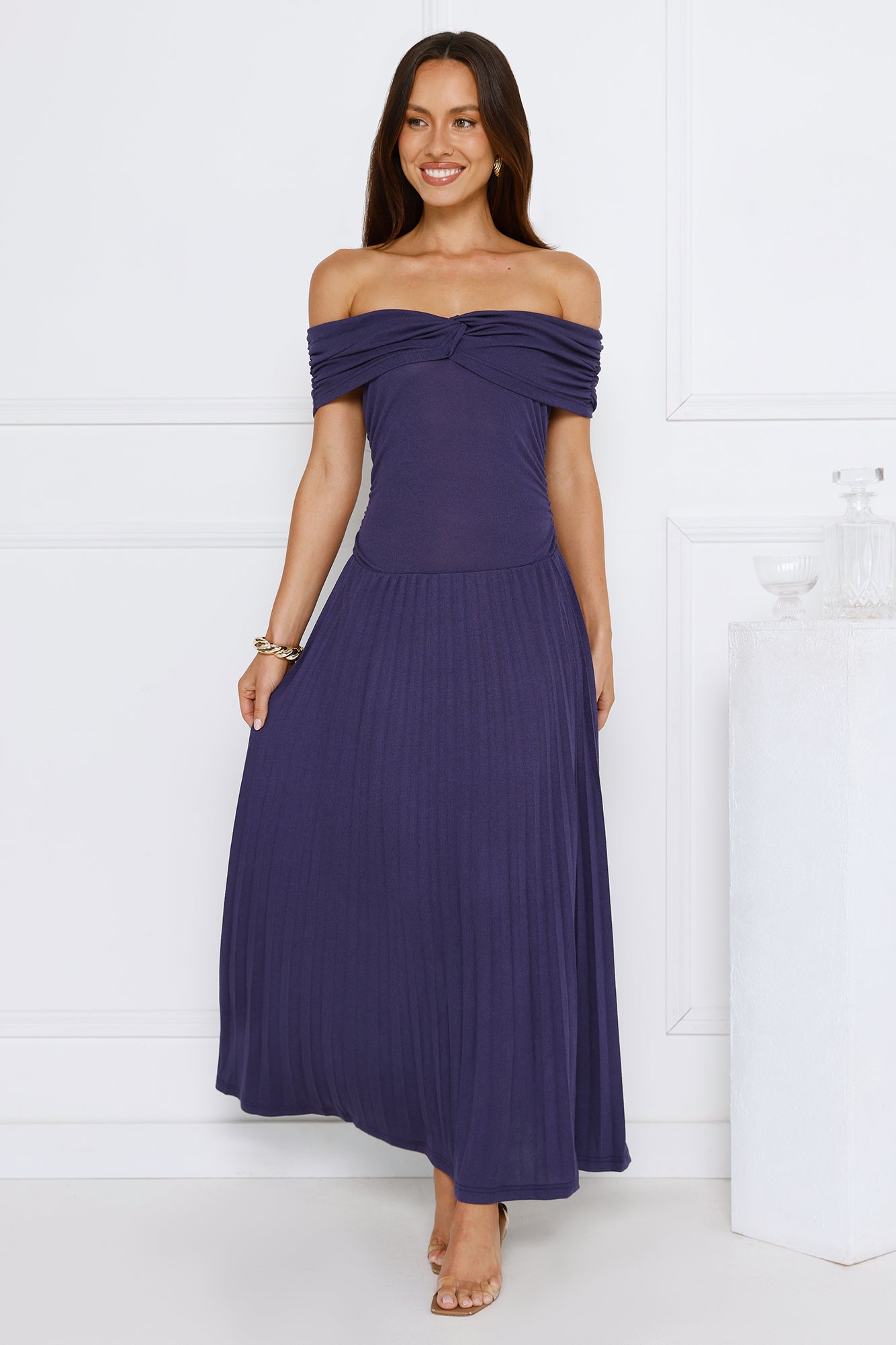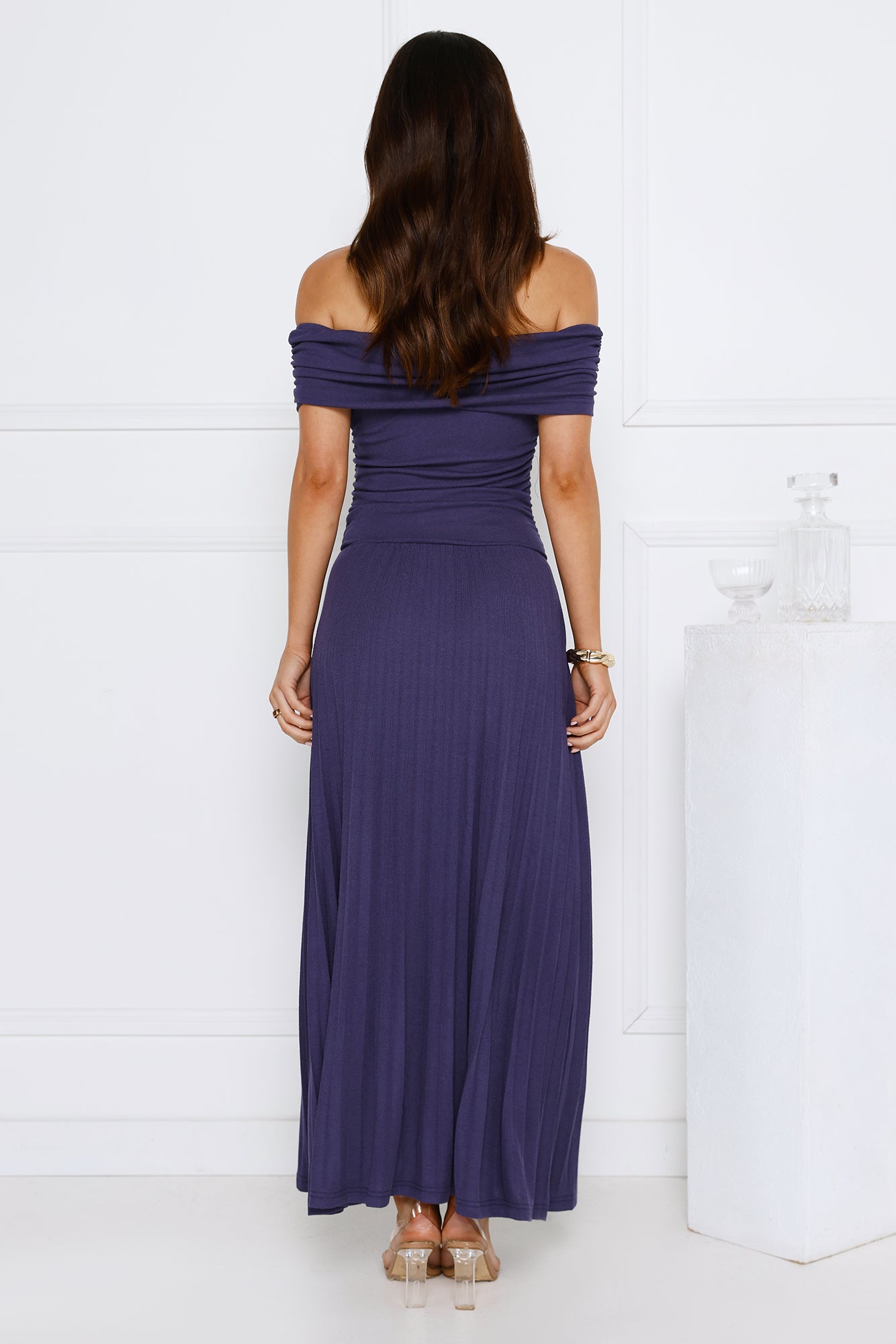 Show off your fab style in the Nikita Off Shoulder Ribbed Maxi Dress. Featuring an off-the-shoulder design. a pleated skirt and a twist to the neckline. Style with heels and curls.