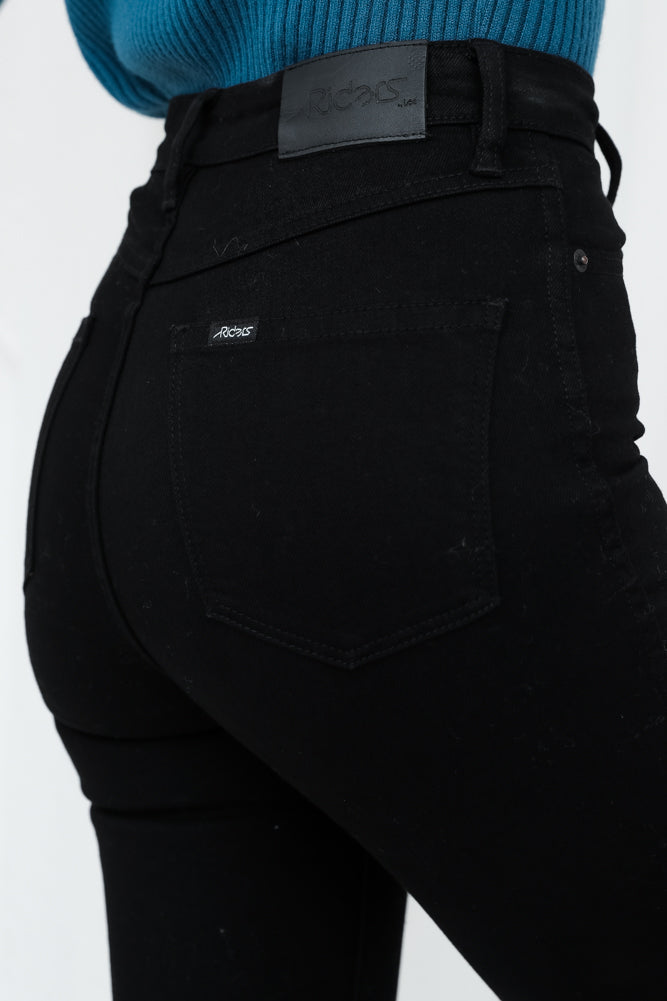 The Hi Rider Jeans by Riders by Lee is the brand's conic super high-rise jean. slim through the leg with a cropped leg length. Featuring an ultra-high waist. a cropped leg length and flattering back pockets. Finished in a classic jet black wash. this jean is an every wardrobe must-have. We're teaming ours with a cute cosy knit top.