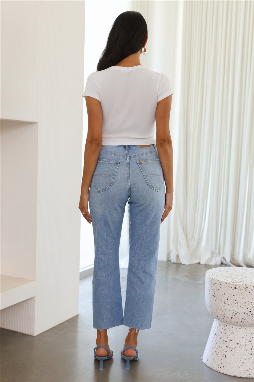 Lovely. these are a wardrobe staple. The RIDERS BY LEE Hi Straight Jeans feature a high rise fit and a cropped design with a raw hem. Style with a crop top and heels for a chic 'fit.