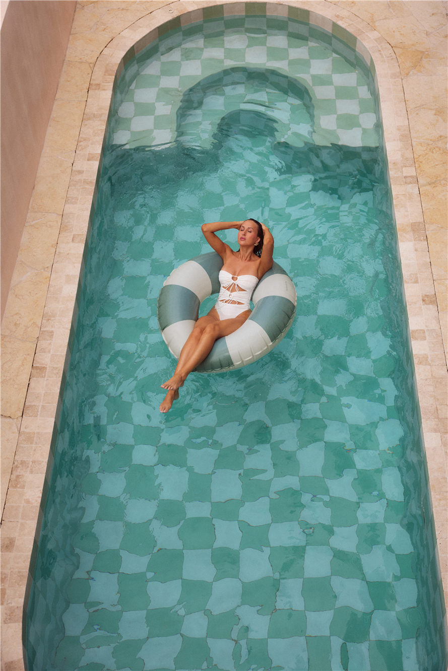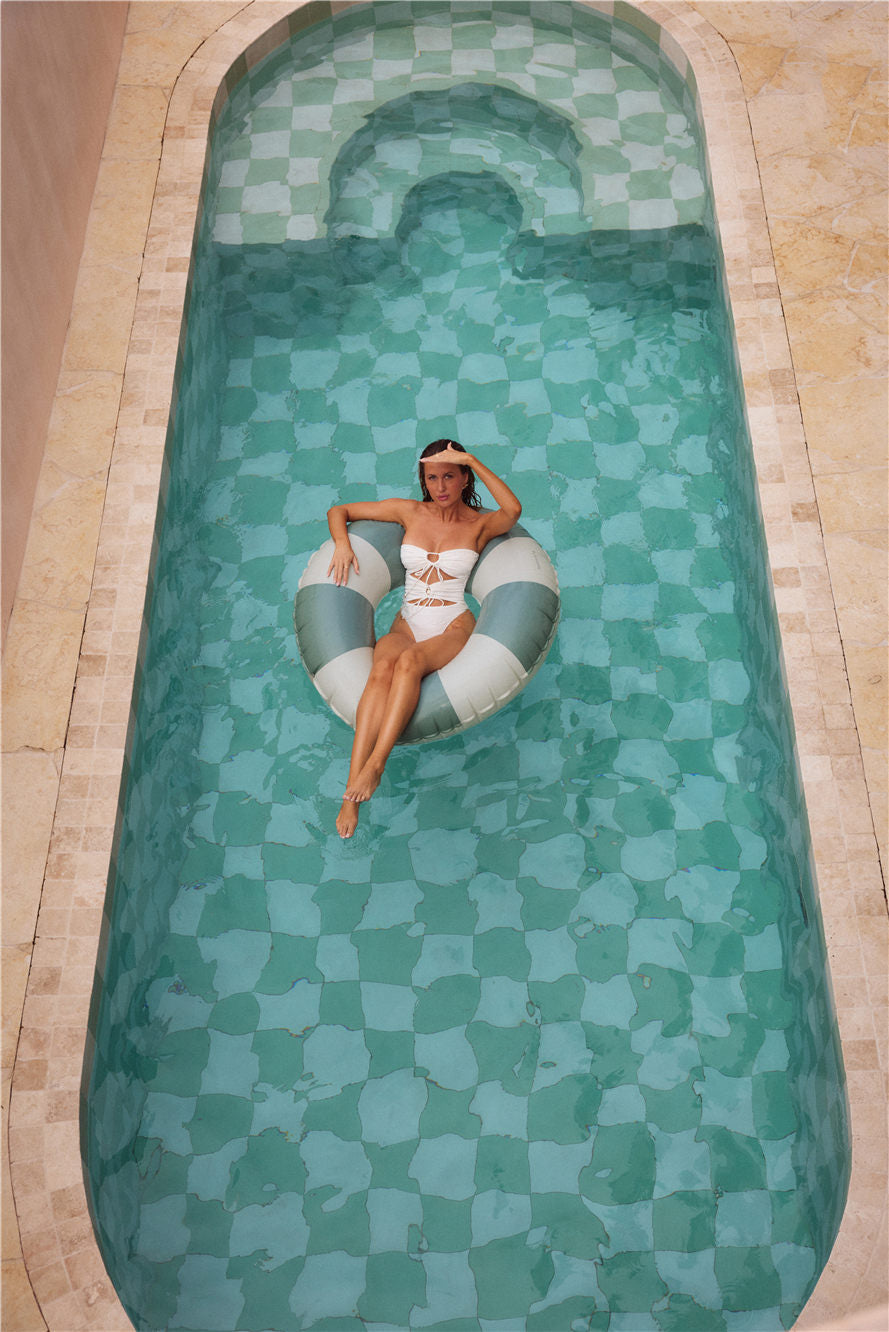 The Rosewater Glow Swimsuit features tie details. daisy charms. and cutouts to the bodice. complemented by a strapless silhouette and high-rise cut. Pair it with oversized sunglasses and a knit dress for effortless beachside style!