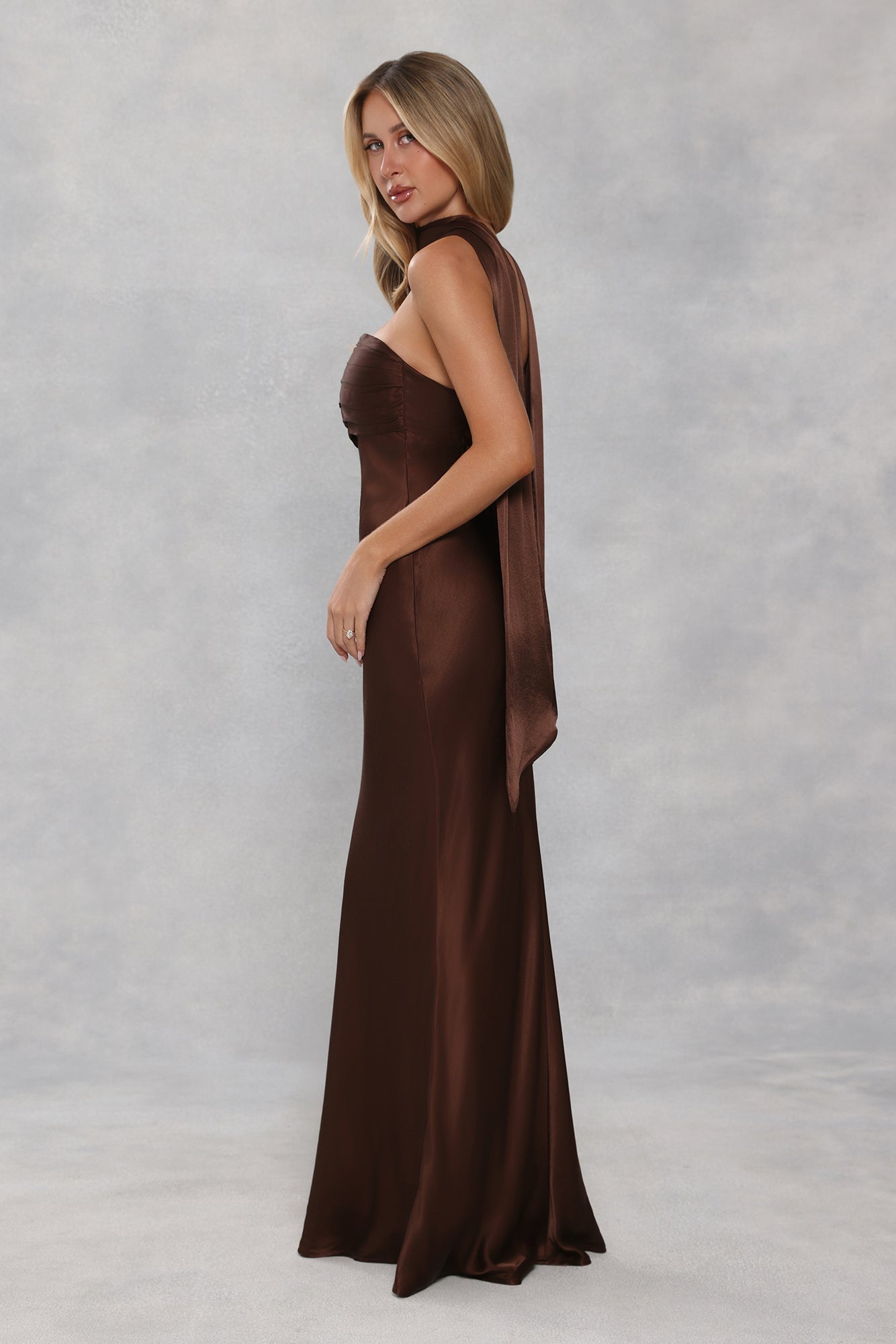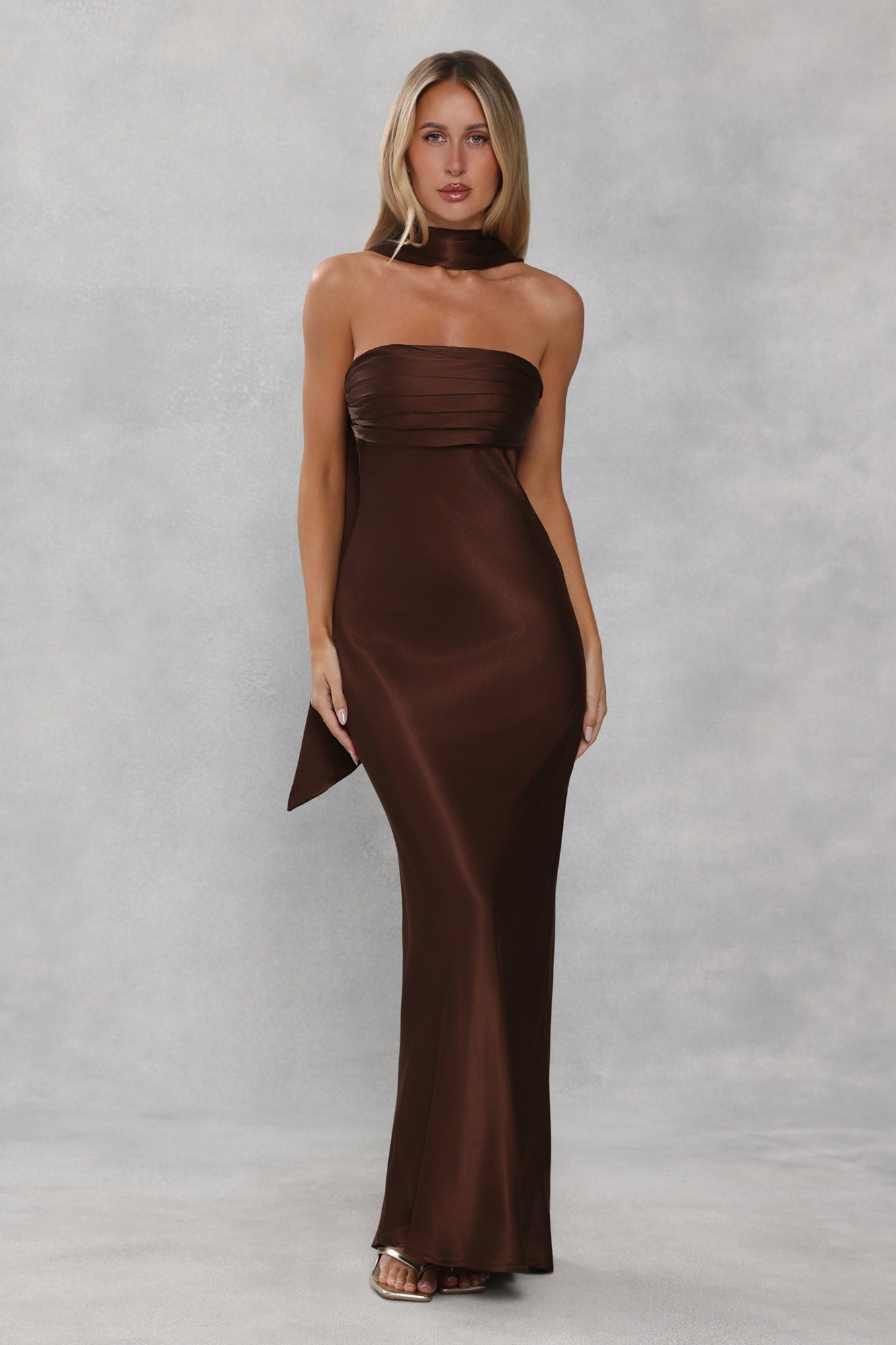 Satin Neck Scarf Chocolate Brown