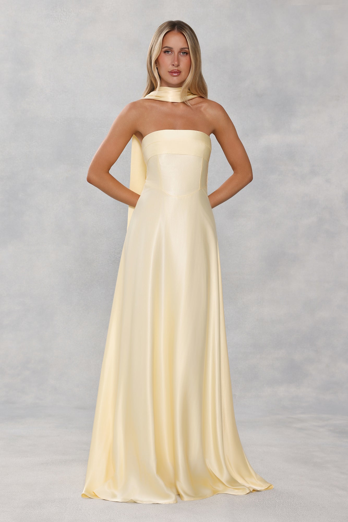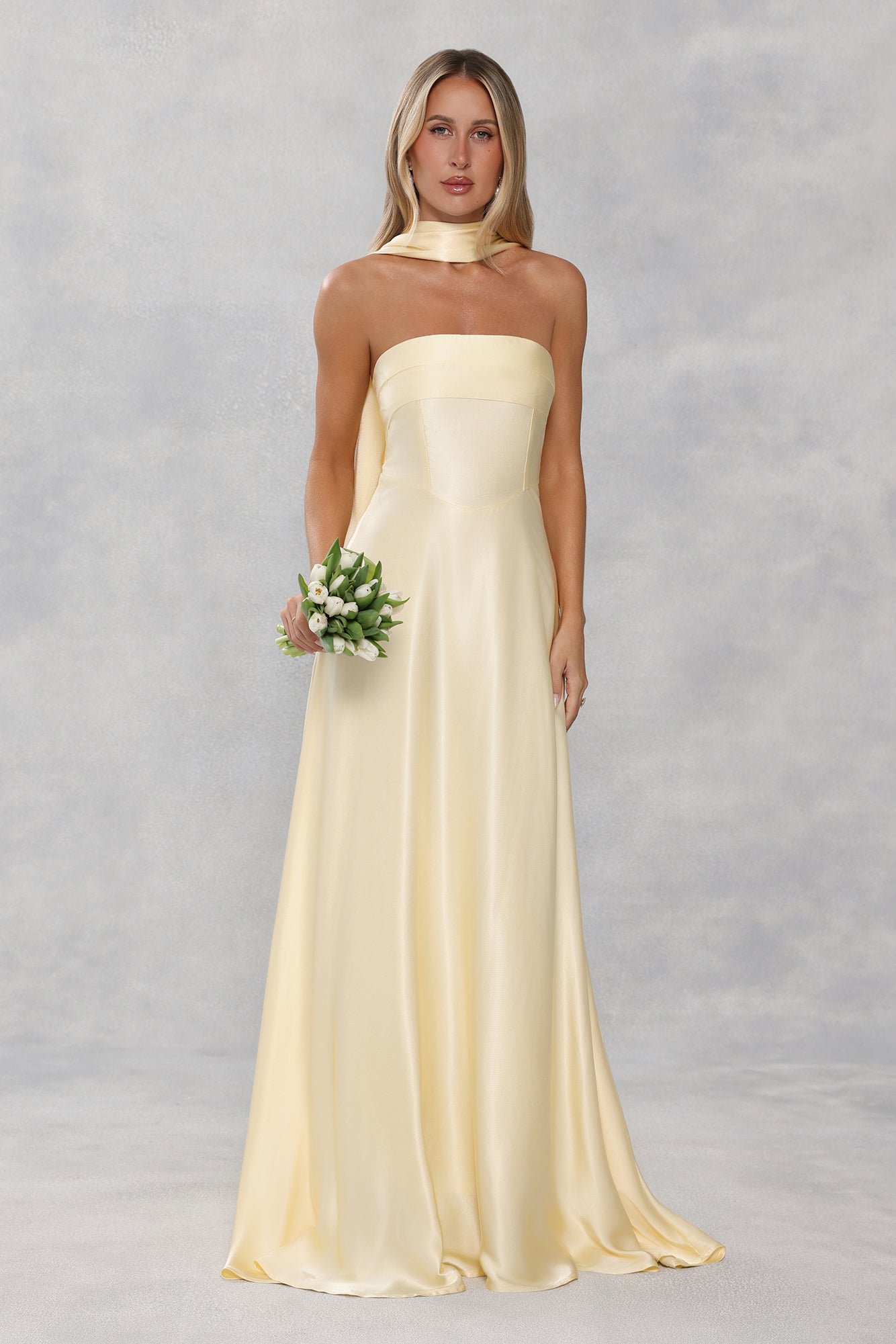 The Satin Neck Scarf is a versatile accessory crafted from smooth. luxurious satin. Perfectly designed to match your Wedding Parlour bridesmaid dress or to effortlessly dress up any outfit. it adds a touch of elegance and sophistication to every look.